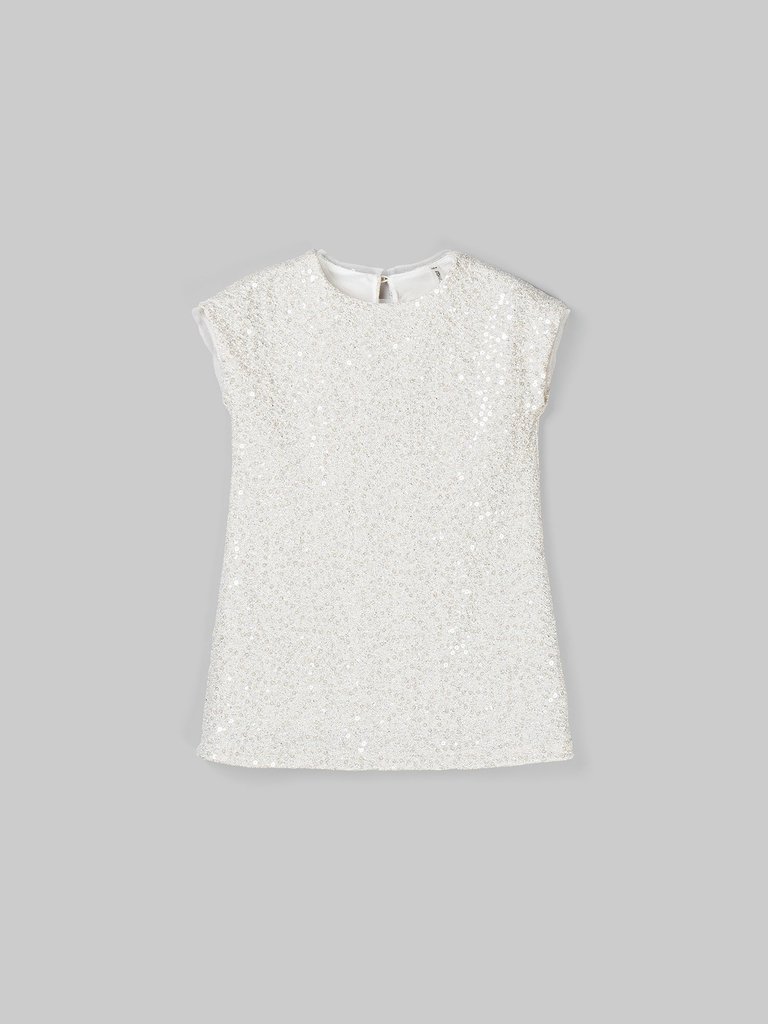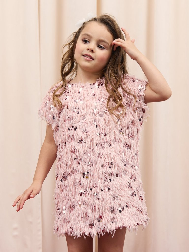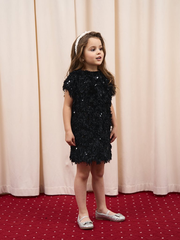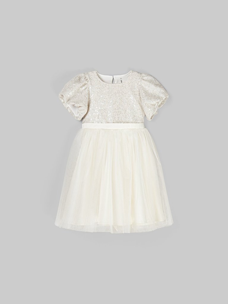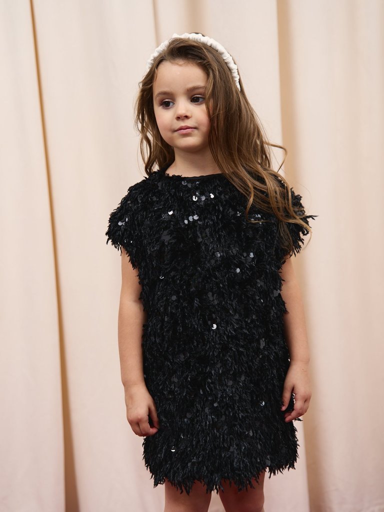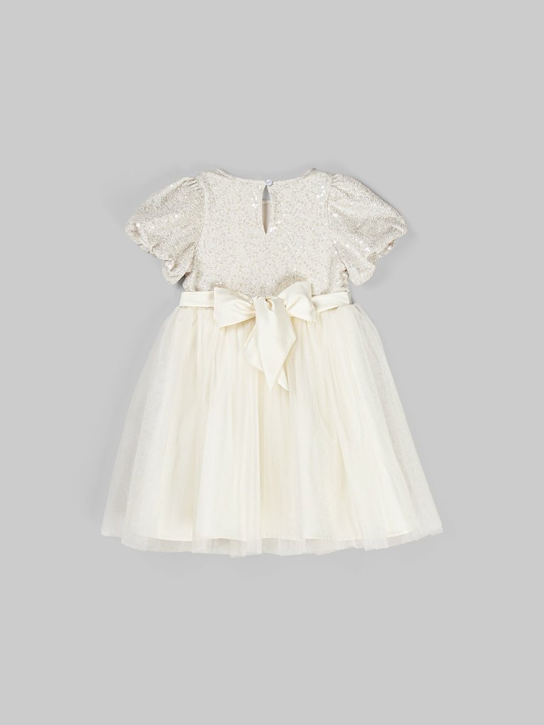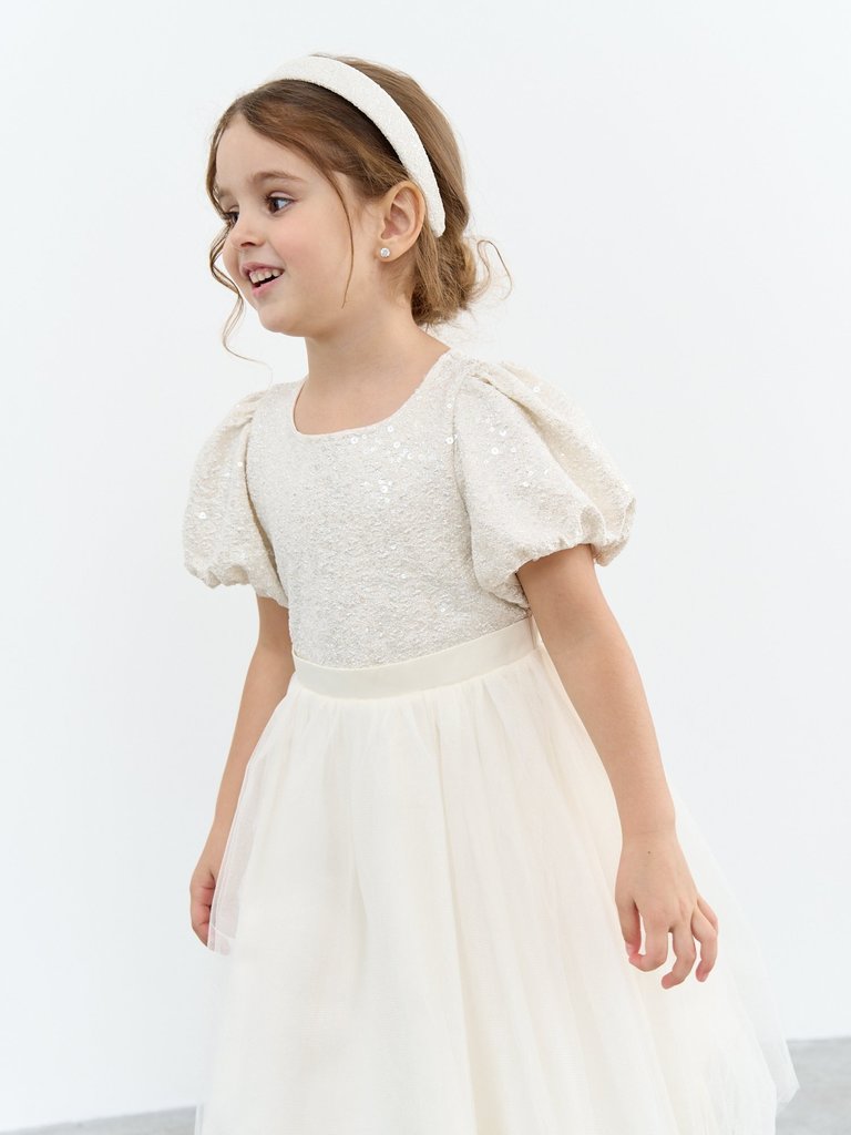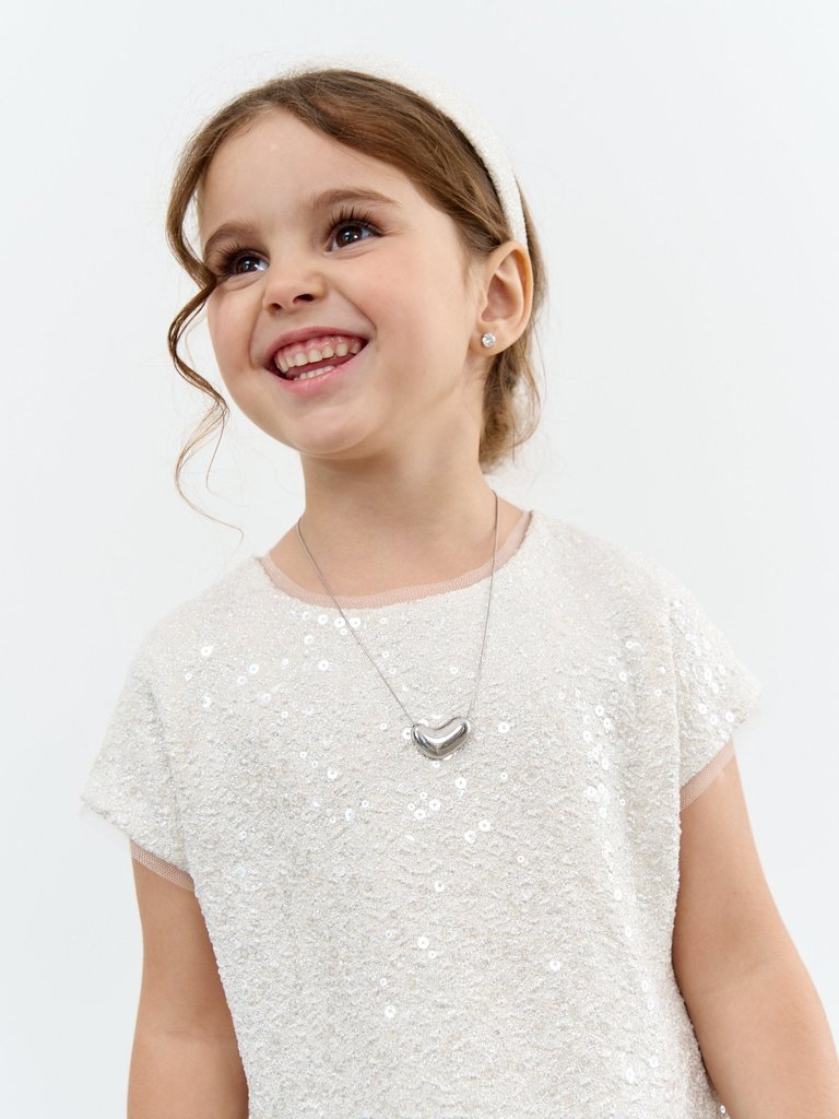 Платье для сияющих образов! Свободный силуэт для комфорта движений. Сверху тонкая трикотажная сетка с нашитыми пайетками, изнутри — гладкая, приятная к телу подкладка. Горловина, рукава и низ обтачены... Показать описание подкладочной тканью, поэтому пайетки не натрут нежную детскую кожу. Застежка на пуговицу сзади. Ткань Верх - трикотаж; подкладка - ниагара Состав Верх - 95% полиэстер, 5% эластан; подкладка - 97% полиэстер, 3% спандекс Уход Ручная или деликатная стирка при температуре не выше 30 °C. Страна производства: Россия