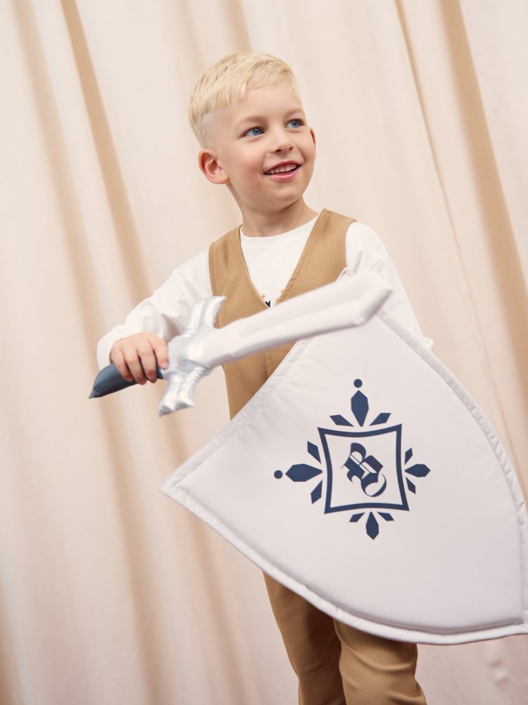 Набор аксессуаров для настоящего героя! Идеально дополнит образ рыцаря и станет любимой игрушкой активного малыша. Щит выполнен из курточной ткани, плотно набит утеплителем и поролоном для объема. Укр... Показать описаниеашен декоративной аппликацией. Сзади имеются ухваты для рук. Размер 37*47 см. Меч из основного материала, набит утеплителем и поролоном. Два слоя изолона внутри сохранят форму изделия, даже после активных игр. Размер 57*12 см. Ткань Верх - мембранная ткань, парча; уплотнитель - поролон Состав 100% полиэстер Уход Ручная или деликатная стирка при температуре не выше 40 °C. Страна производства: Россия