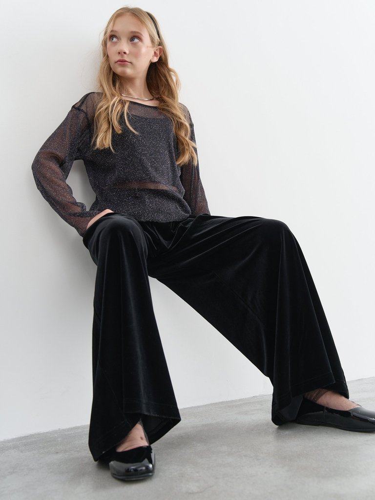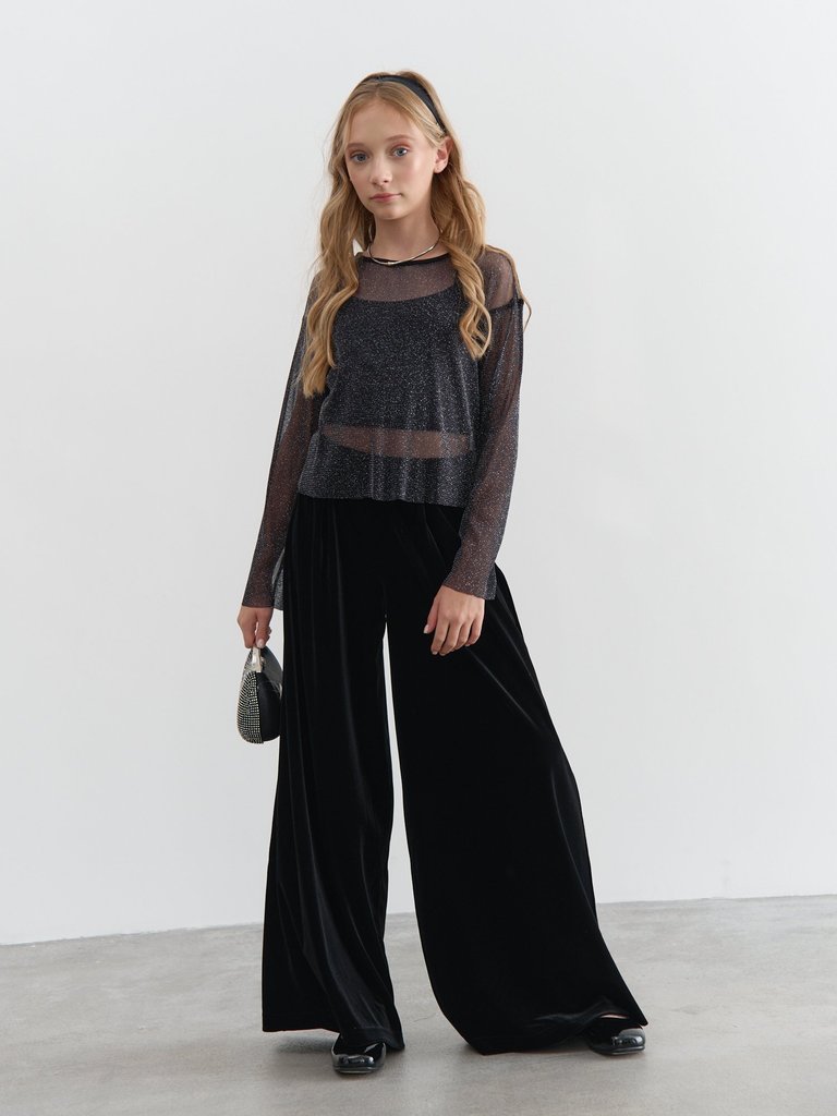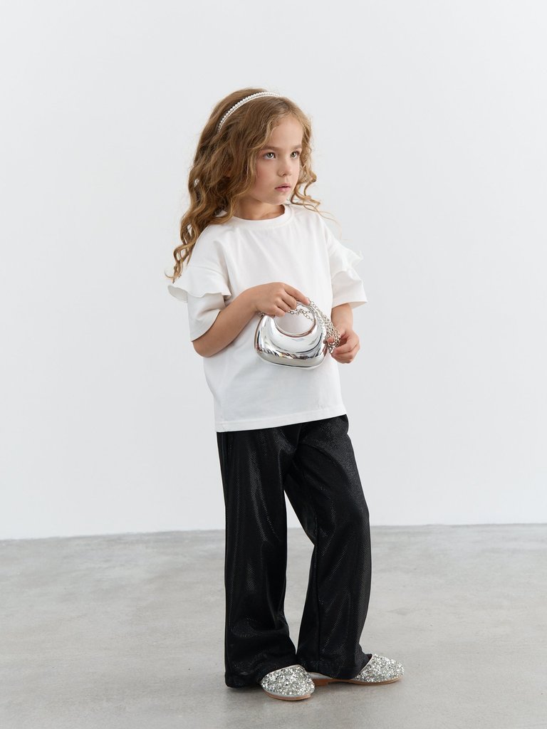 Нарядные брюки из приятного к телу трикотажа с люрексом. Продуманный крой для свободы движений. Красивая посадка на любой тип фигуры. Широкий пояс с эластичной резинкой подчеркивет талию. Ткань Трикот... Показать описаниеаж Состав 100% полиэстер Уход Машинная стирка 40 °C. Предварительная стирка обязательна. Страна производства: Россия