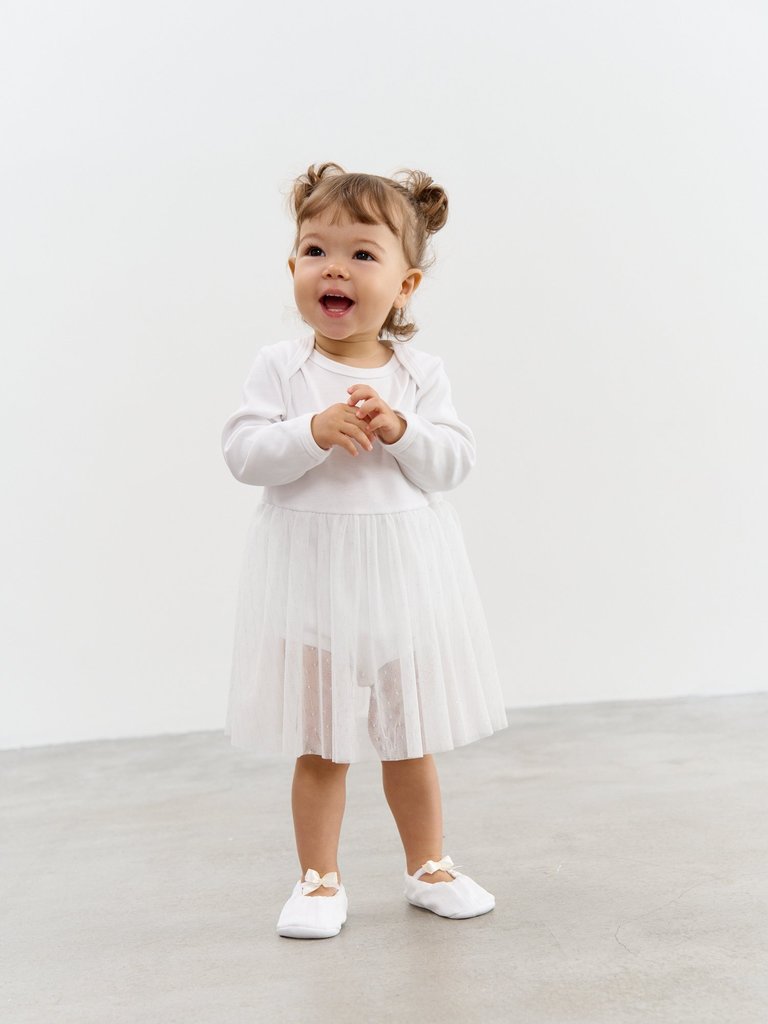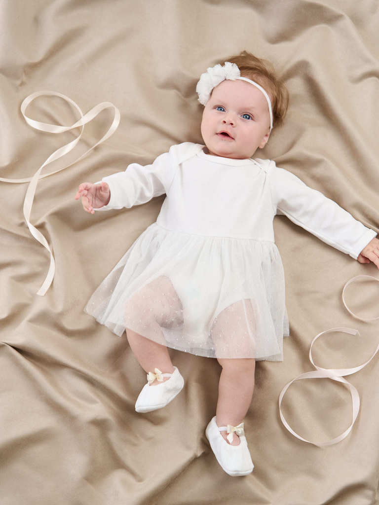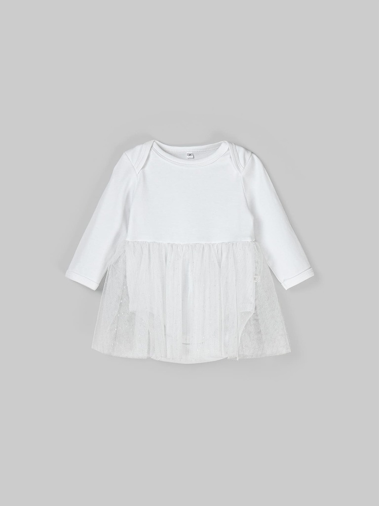Для красивых образов и праздничного настроения! Нарядное платье-боди с пышной юбкой из фатина. Мягкий, приятный к телу хлопковый трикотаж. Фигурный вырез горловины и кнопки в плече для удобства переод... Показать описаниеевания. При смене подгузника не нужно снимать платье полностью – просто расстегните кнопки снизу. Ткань Верх - интерлок; отделка - фатин Состав Верх - 100% хлопок; отделка - 100% полиэстер Уход Машинная стирка 30 °C. Предварительная стирка обязательна. Страна производства: Россия
