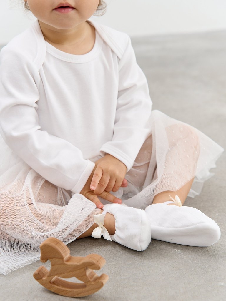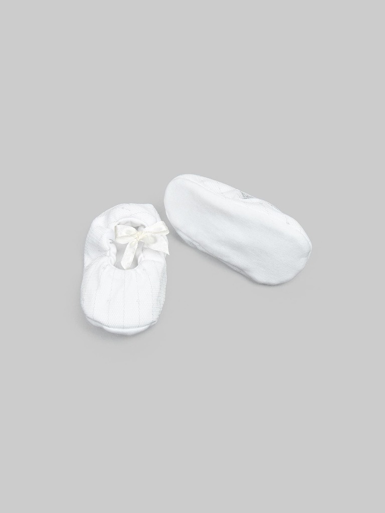 Очаровательный аксессуар для маленьких принцесс! Приятный к телу материал с нежными узорами сверху. Атласные ленты для идеальной посадки по маленькой ножке. Ткань Верх - интерлок; отделка - фатин Сост... Показать описаниеав Верх - 100% хлопок; отделка - 100% полиэстер Уход Ручная или деликатная стирка при температуре не выше 40 °C. Страна производства: Россия