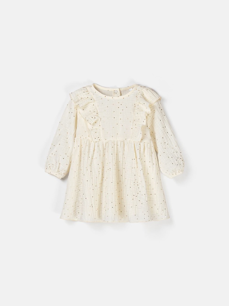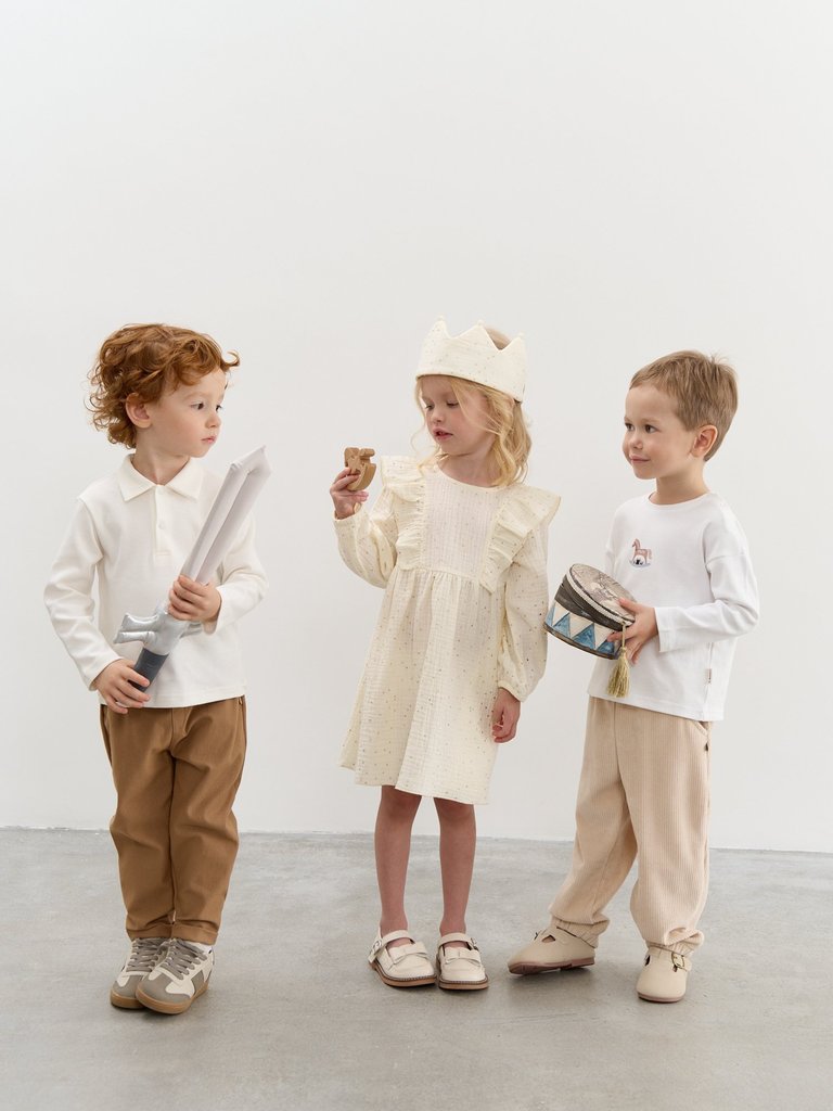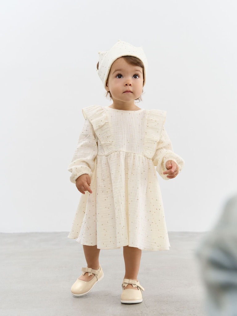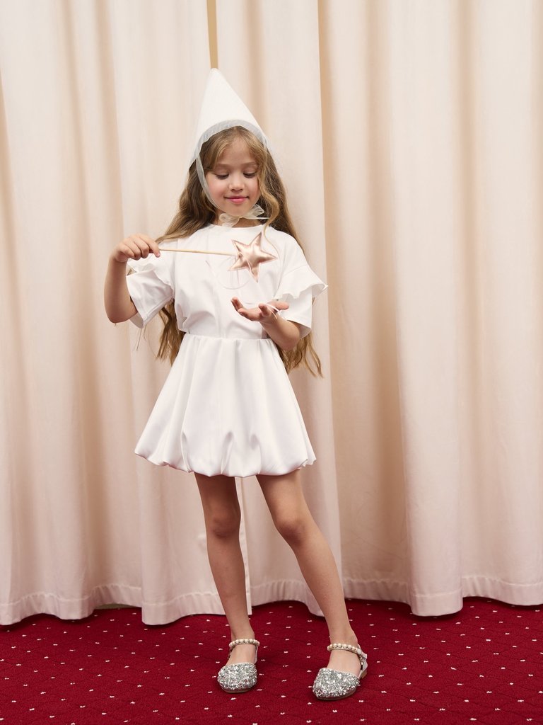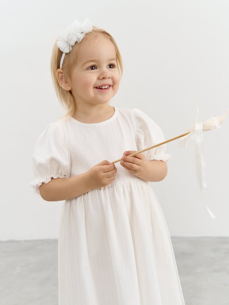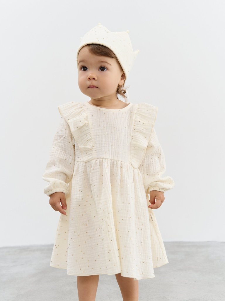Летящее платье из нежного муслина. Комфортный крой для свободы движений. Длинные рукава с игривыми крылышками. Эластичная резинка позволяет легко собрать рукава для мытья рук или занятий творчеством. ... Показать описаниеПышная юбка со сборкой. Застежка на кнопки сзади для легкости переодевания. Ткань Муслин Состав 100% хлопок Уход Машинная стирка 30 °C. Предварительная стирка обязательна. Страна производства: Россия