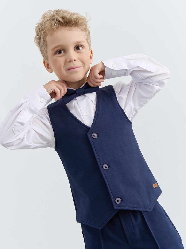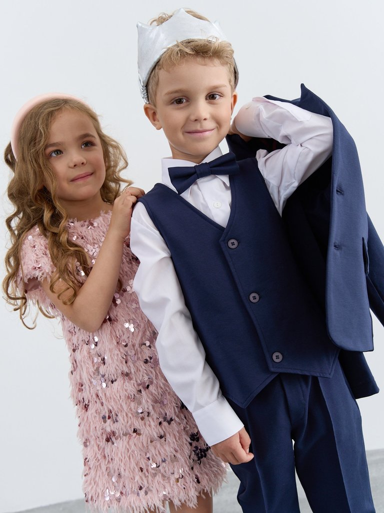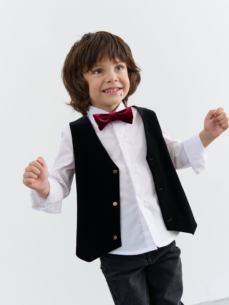 Жилет для маленьких джентельменов. Нежный бархат красиво переливается на свету. Внутри — гладкий подклад. Модель полуприлегающего силуэта. Застежка на пуговицы спереди. Идеально сочетается с жакетом и... Показать описание чиносами. Ткань Верх - бархат; подкладка - ниагара Состав Верх - 95% полиэстер, 5% лайкра; подкладка - 100% полиэстер Уход Машинная стирка 40 °C. Предварительная стирка обязательна. Страна производства: Россия