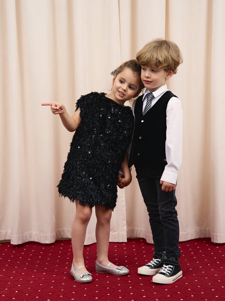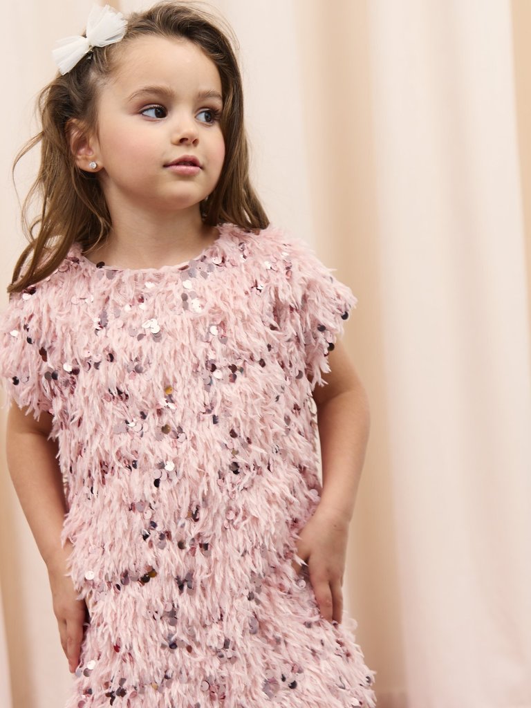 Нарядное платье для истинных модниц. Сверкающие пайетки и искусственные перья делают это платье идеальным выбором на праздник или фотосессию. Приятная к телу ткань на изнанке. Сзади застежка-капелька ... Показать описаниена перламутровую пуговицу. Горловина, рукава и низ обтачены подкладочной тканью, поэтому пайетки не натрут нежную детскую кожу. Ткань Верх - трикотаж; подкладка - ниагара Состав 100% полиэстер Уход Машинная стирка 30 °C. Предварительная стирка обязательна. Страна производства: Россия