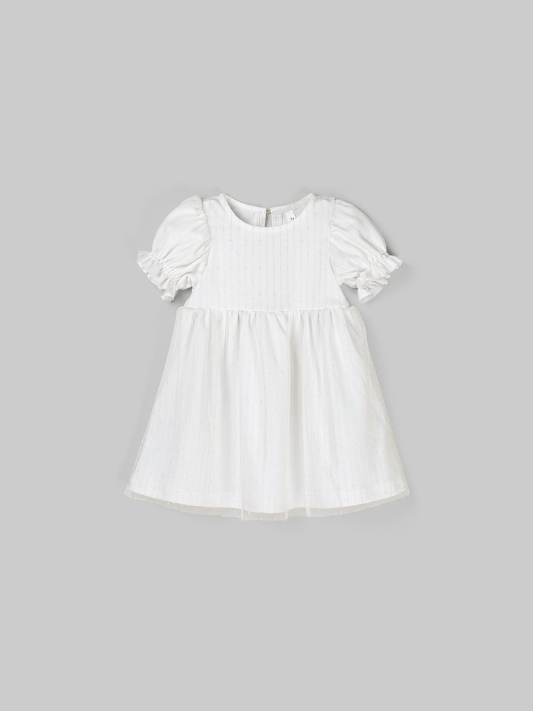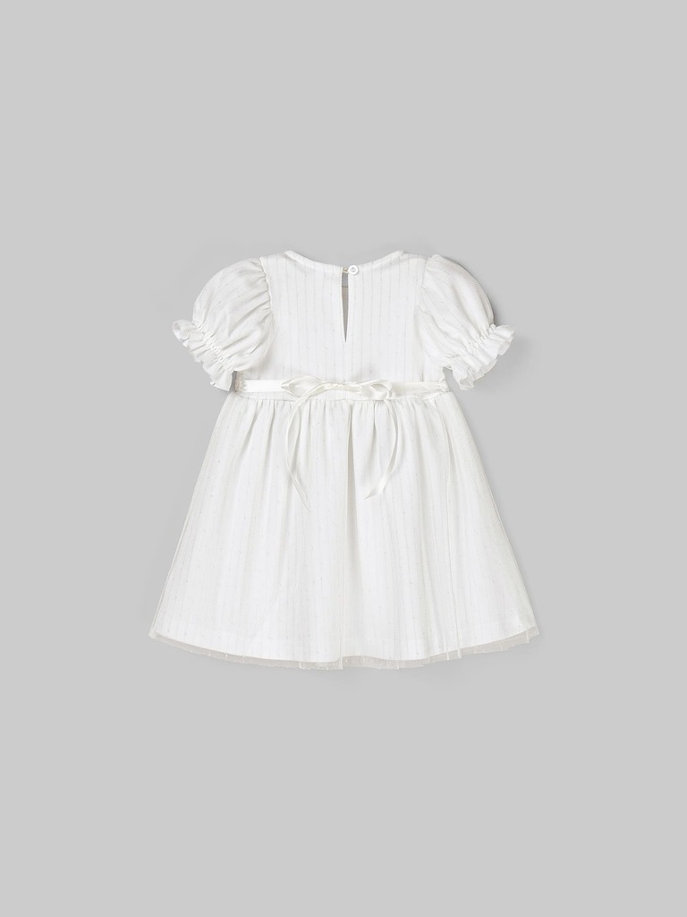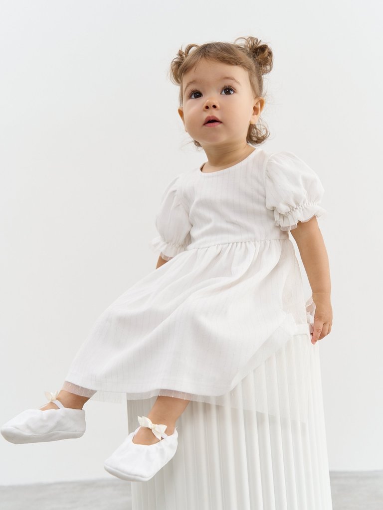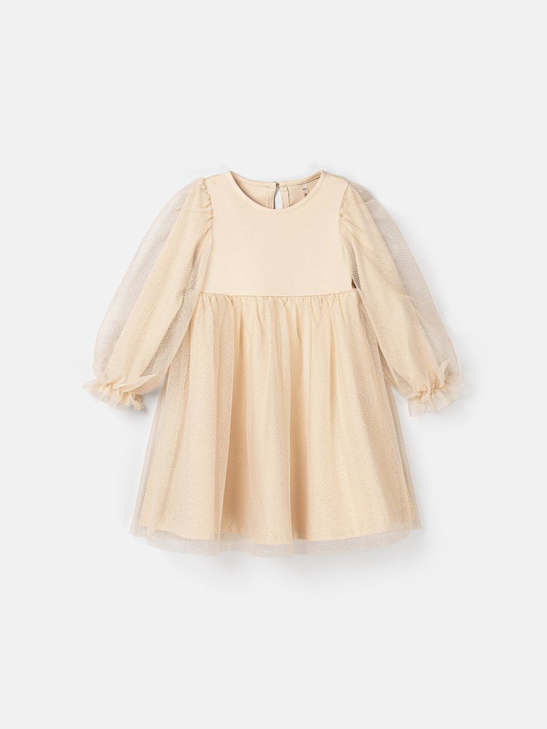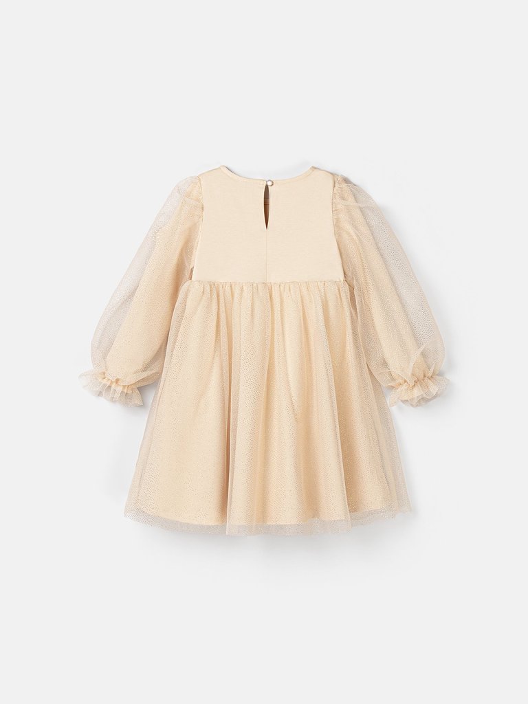Очаровательная модель из мягкого эластичного трикотажа. Дополнительный слой из нежного фатина на рукавах и юбке. Комфортный крой для свободы движений. Очаровательные рукава-фонарики и пышная юбка для ... Показать описаниемилого образа. Пояс из атласной ленты завязывается в красивый бант сзади. Застежка на пуговицу на спинке. Ткань Верх - интерлок; отделка - фатин Состав Верх - 100% хлопок; отделка - 100% полиэстер Уход Машинная стирка 30 °C. Предварительная стирка обязательна. Страна производства: Россия