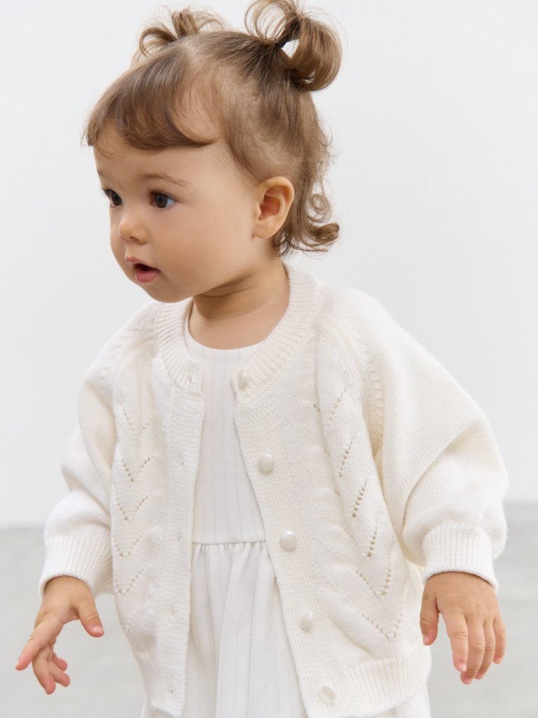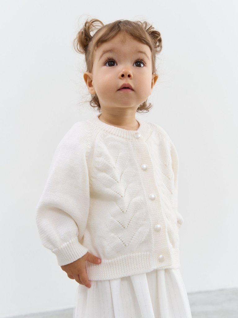 Вязаный кардиган для прогулок, красивых фотосессий и уюта в прохладную погоду. Мягкая пряжа из хлопка с добавлением шерсти приятна к телу, сохраняет тепло и не колется, поэтому кардиган удобно носить ... Показать описаниедаже на футболку или бодик. Ажурный узор добавляет образу очаровательности. Продуманный крой не стесняет движения. Манжеты и низ с эластичным переплетением хорошо держат форму и не растягиваются даже после частых стирок. Состав 70% акрил, 30% шерсть Уход Ручная или деликатная стирка 30 °C с использованием специального чехла. Не замачивать. Отжимать на минимальных оборотах. Сушить в расправленном виде в горизонтальном положении. Страна производства: Россия
