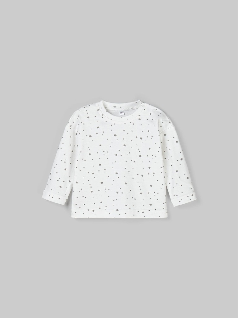 Комфортный лонгслив прямого силуэта. Мягкий и приятный к телу трикотаж с маленькими звездочками. Удобный крой для свободы движений. Застежка на кнопки в плече для удобства надевания. Ткань Интерлок Со... Показать описаниестав 100% хлопок Уход Машинная стирка 30 °C. Предварительная стирка обязательна. Страна производства: Россия