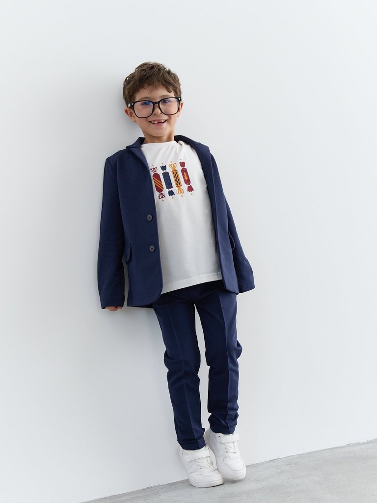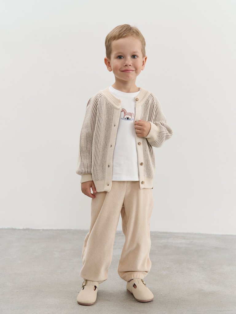 Идеальный жакет для маленького джентельмена! Приятный к телу хлопковый трикотаж с петельками на изнанке. Модель полуприлегающего силуэта. Застежка на пуговицы спереди. Удобные карманы по бокам с клапа... Показать описаниенами. Идеально сочетается с жилетом и чиносами. Ткань Футер двухнитка петля Состав 95% хлопок, 5% лайкра Уход Машинная стирка 30 °C. Предварительная стирка обязательна. Страна производства: Россия