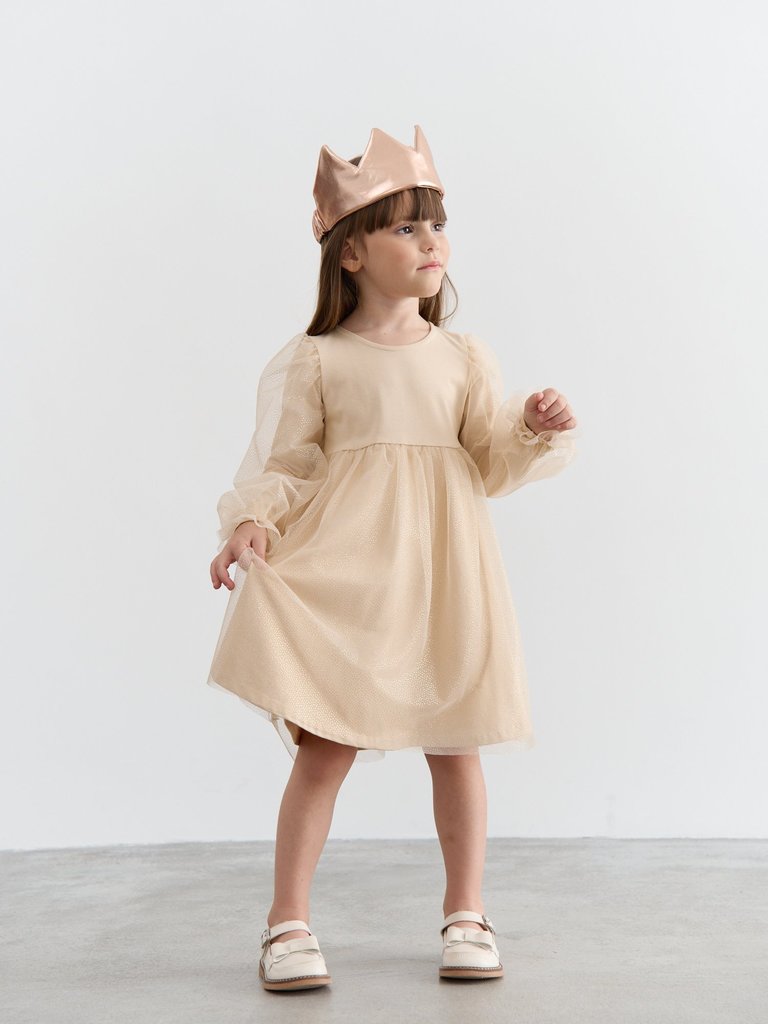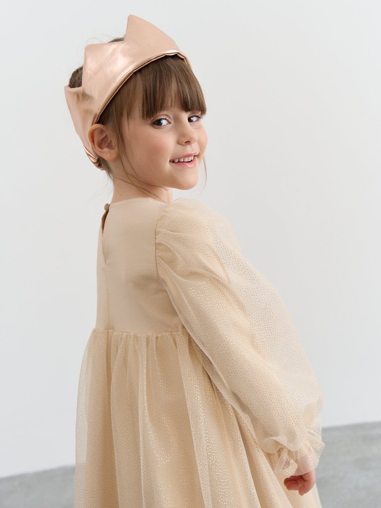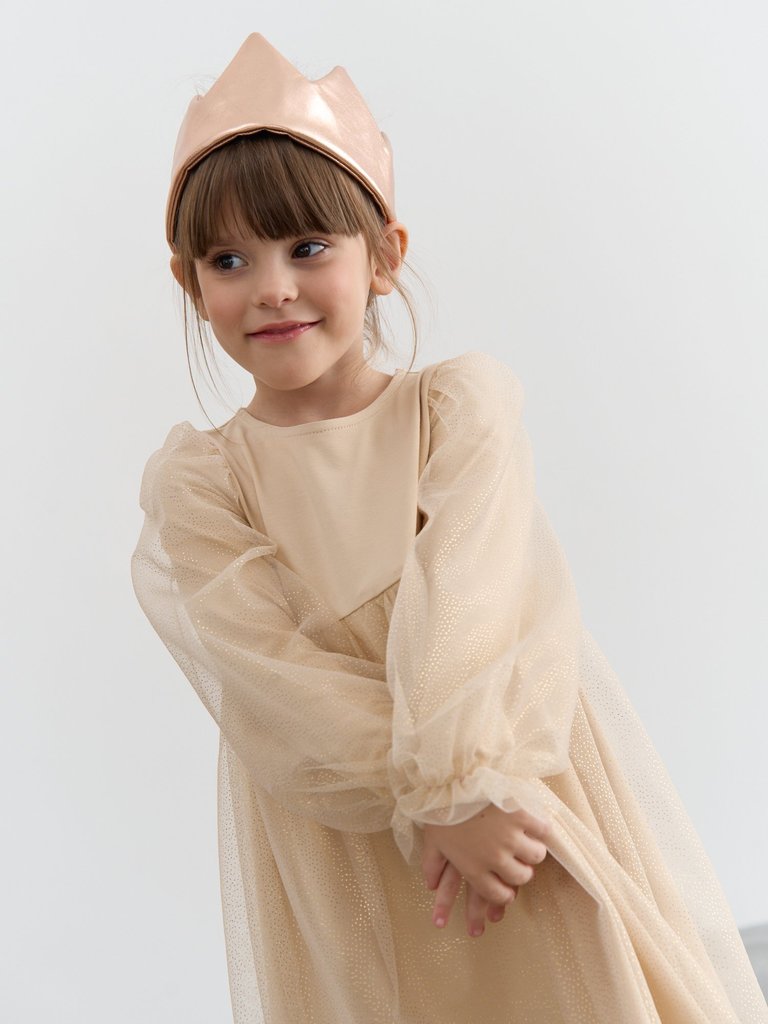 Нарядное платье для настоящей принцессы. Свободный крой не стесняет движений во время танцев или активных игр. Основной материал – нежный хлопковый трикотаж с добавлением лайкры для эластичности. Рука... Показать описаниева и пышная юбка из воздушного фатина. Приталенный силуэт с отрезной талией и пышной юбкой отлично подходит для праздника или фотосессии. Застегивается сзади на перламутровую пуговицу-капельку. Ткань Верх - трикотаж с пайетками, фатин; подкладка – кулирная гладь, атлас Состав Верх 1 - 95% полиэстер, 5% эластан; верх 2 - 100% полиэстер; подкладка 1 - 95% хлопок, 5% лайкра; подкладка 2 - 100% полиэстер Уход Ручная или деликатная стирка при температуре не выше 30 °C. Предварительная стирка обязательна. Страна производства: Россия