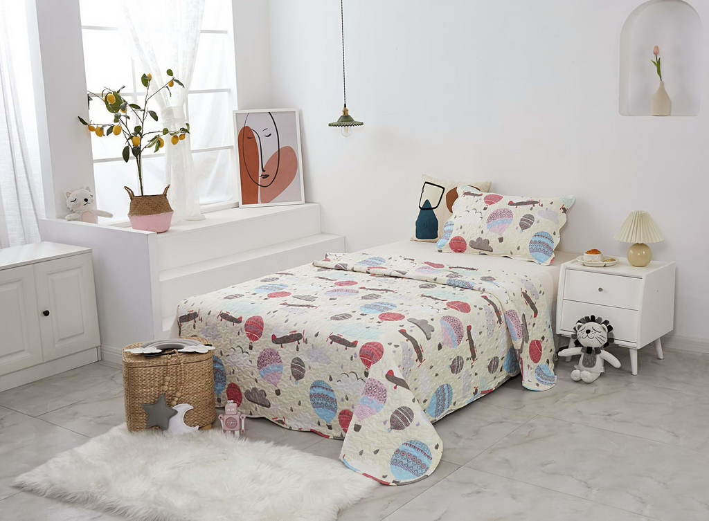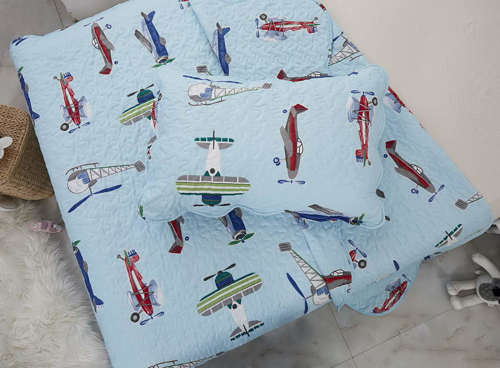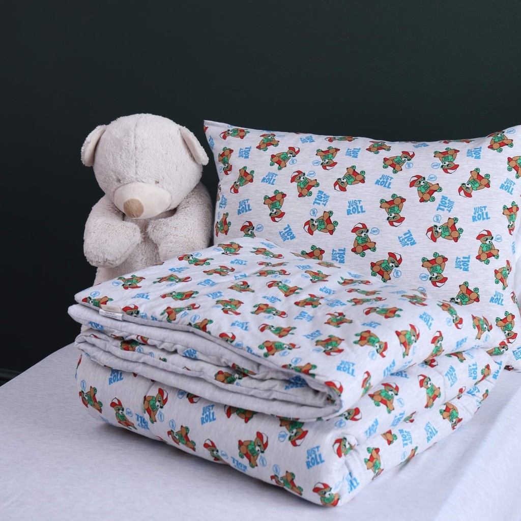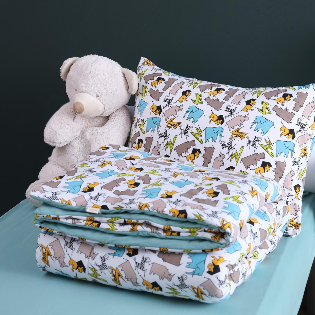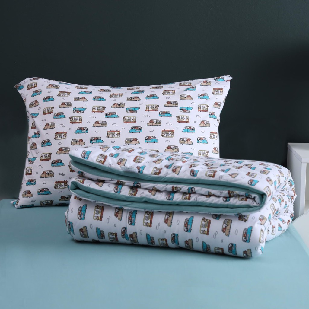 Комплект с одеялом : Одеяло 160х220 см (1) Простыня на резинке 90х190 см (1) Наволочка 50х70 см (1), наволочка на молнии. Состав: 100% хлопок, трикотаж Уход : деликатная стирка Упаковка: ПВХ упаковка