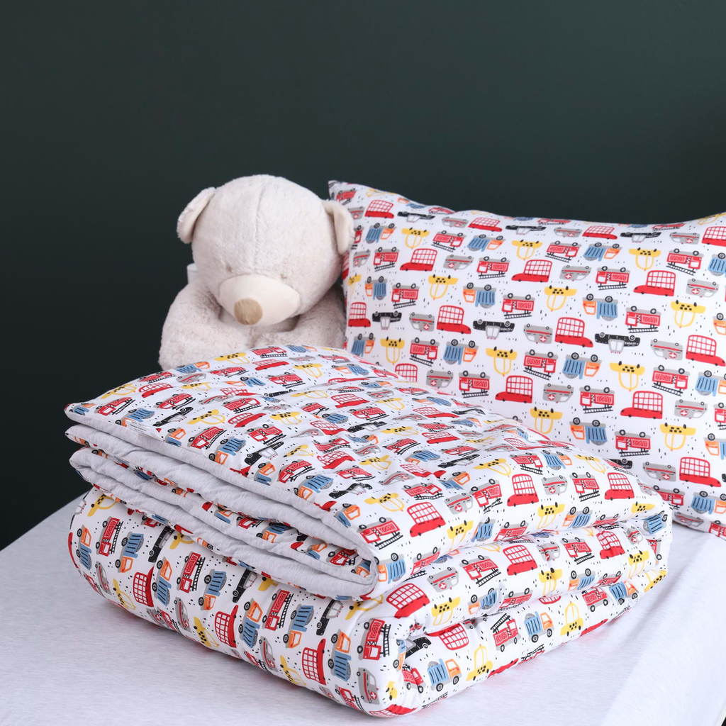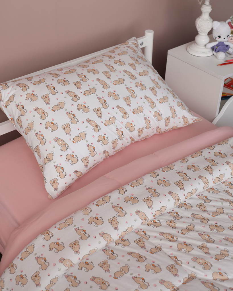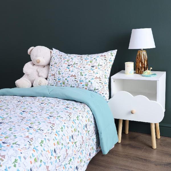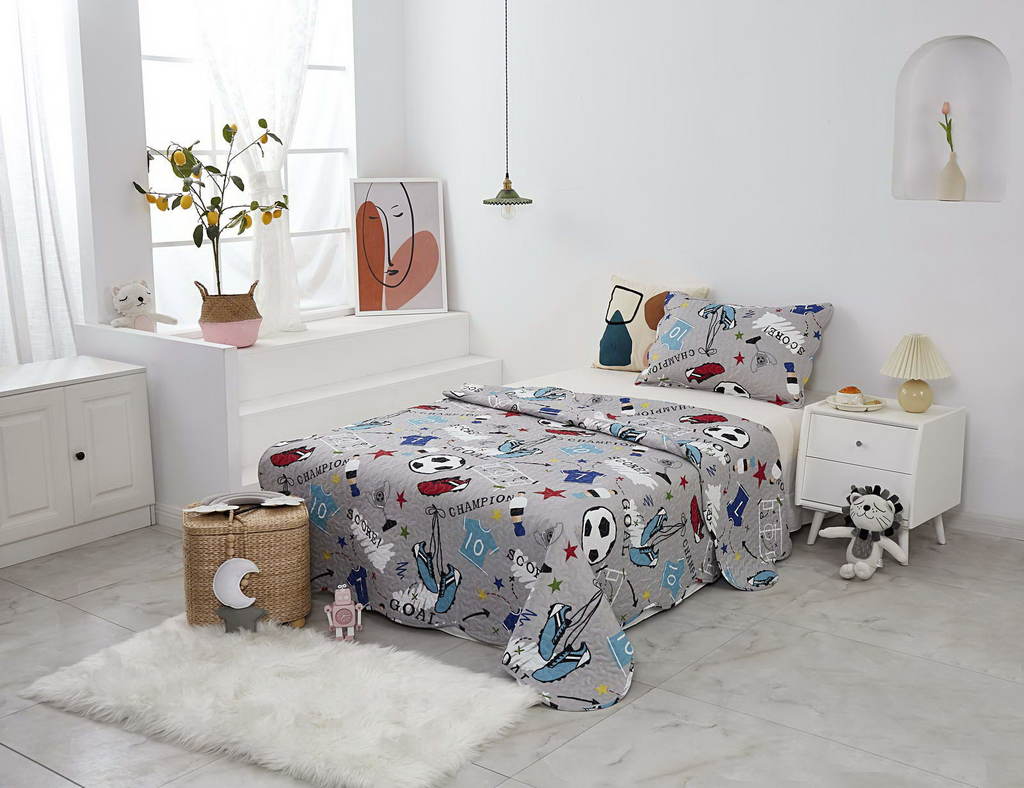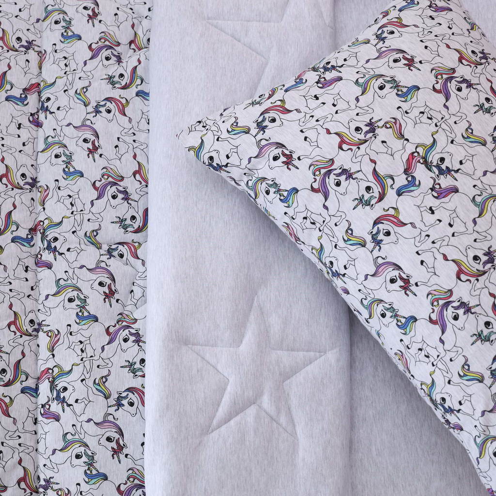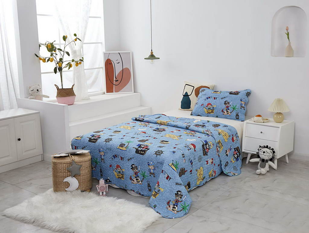 Комплект с одеялом : Одеяло 160х220 см (1) Простыня на резинке 90х190 см (1) Наволочка 50х70 см (1), наволочка на молнии. Состав: 100% хлопок, трикотаж Уход : деликатная стирка Упаковка: ПВХ упаковка