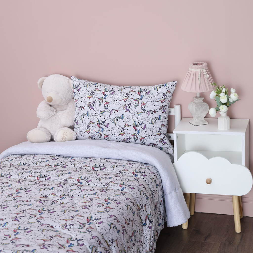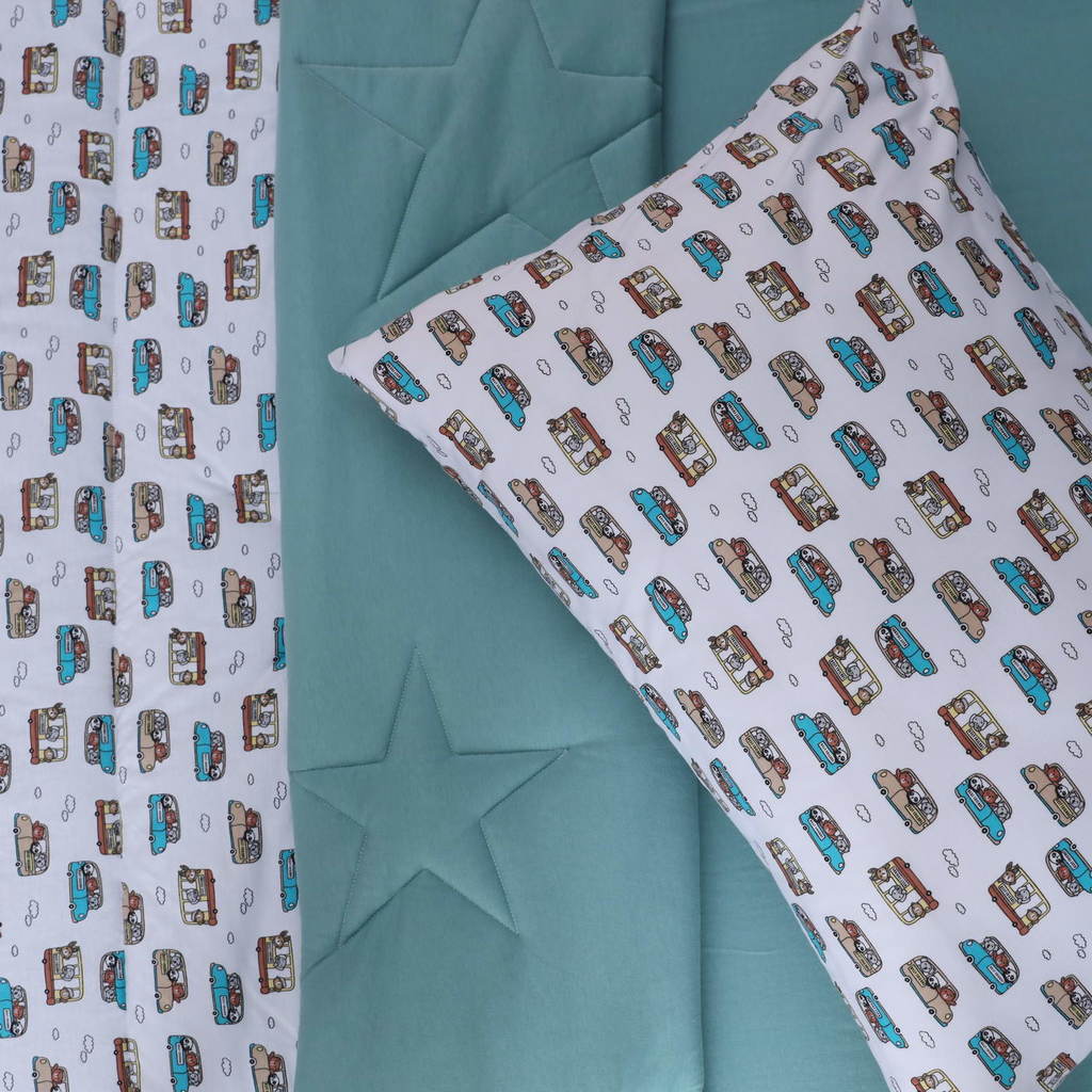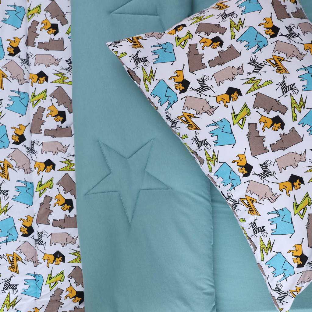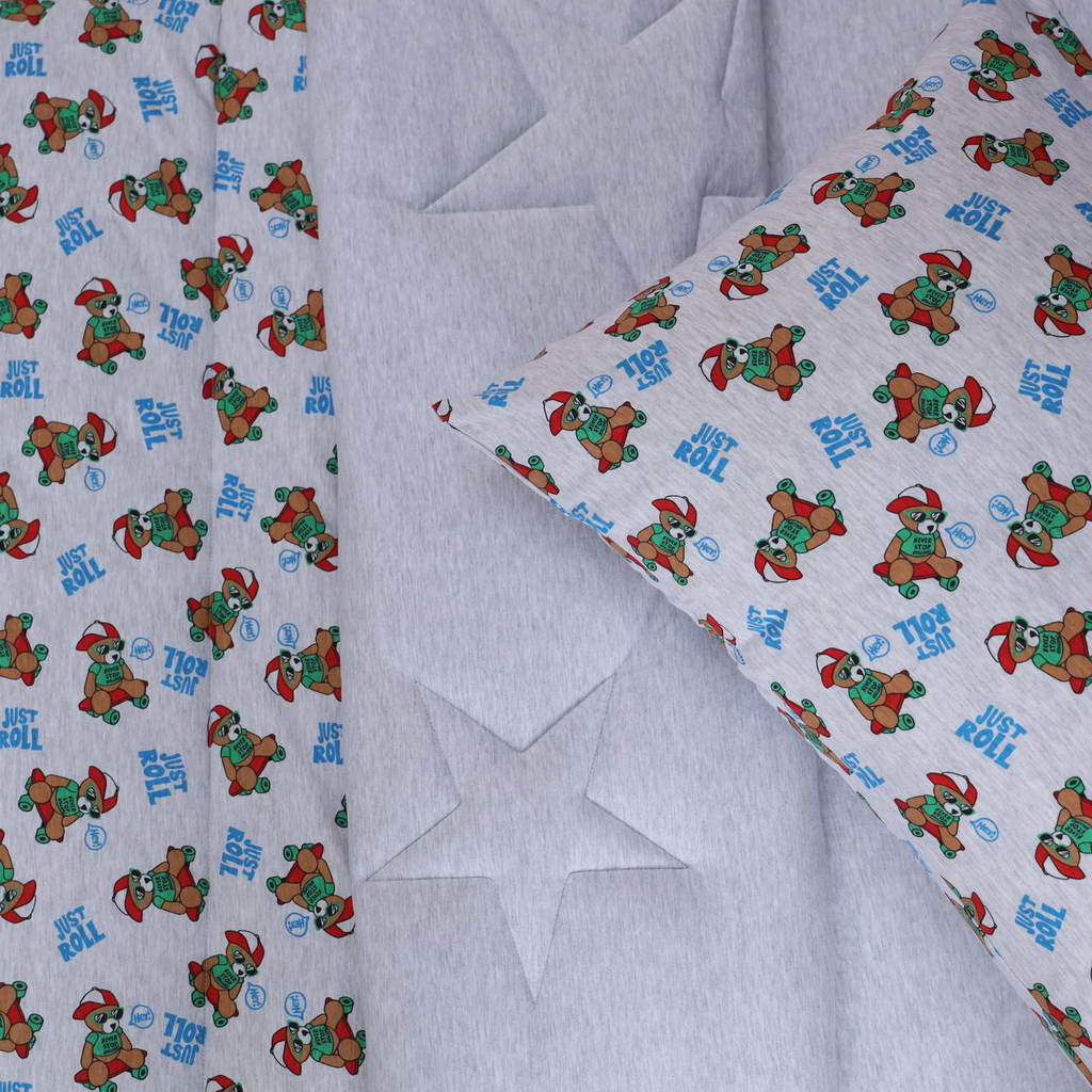 Комплект с одеялом : Одеяло 160х220 см (1) Простыня на резинке 90х190 см (1) Наволочка 50х70 см (1), наволочка на молнии. Состав: 100% хлопок, трикотаж Уход : деликатная стирка Упаковка: ПВХ упаковка