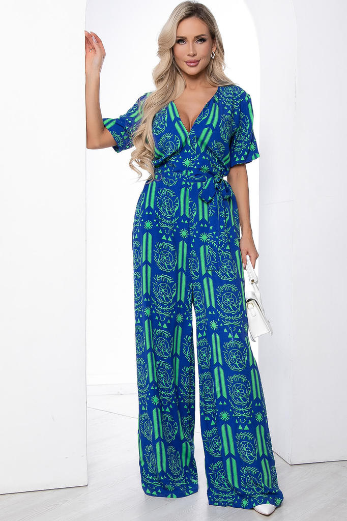 Артикул: К8778. Ткань: штапель. Состав: 50% хлопок, 50% вискоза. Цвет: электрик. Вид застежки: потайная молния на груди. Силуэт: свободный. Карманы: есть. Длина изделия комбинезон по спинке:... Показать описание 44-54/ 158 см. Рост модели: 168 см. Яркий комбинезон из лёгкой ткани идеально подойдёт для повседневного расслабленного образа. Свободный крой не сковывает движений и дарит комфорт. Рукав втачной, короткий. Акцент образу придает вырез, который идеально подчеркивает зону декольте. В таком комбинезоне вы точно не останетесь незамеченной! Внимание! Ткань усаживается по длине после стирки. Поэтому рекомендуется перед тем, как подшить изделие, предварительно его постирать. Уход за изделием: ручная стирка до 30 градусов; нельзя отбеливать; деликатный отжим; гладить при t не более 110 С; гладить с изнанки. *Допуск отклонения длины при массовом производстве 1-3 см является нормой.