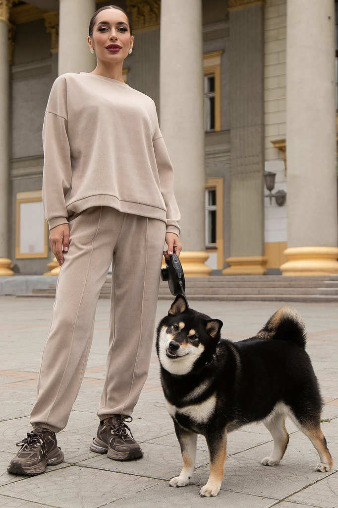 Состав : 65% полиэстер, 30% вискоза, 5% эластан Материал : трикотаж Цвет : бежевый Принт : отсутствует Силуэт : свободный Карманы : есть Резинка в поясе : да Вид застежки : без застёжки Декоративные э... Показать описаниелементы : отсутствуют Этот костюм — отличный выбор для тех, кто любит удобство и свободу движений. Свободный крой верха и спущенный рукав создают ощущение комфорта, что особенно актуально в прохладную погоду. Брюки на талии с резинкой обеспечивают дополнительный комфорт, а резинка внизу брюк добавляет практичности и стиля. Наличие боковых карманов позволяет удобно хранить мелочи. Этот комплект станет незаменимым элементом вашего гардероба, сочетая в себе удобство, функциональность и стильный внешний вид. Подчеркните свою индивидуальность и наслаждайтесь каждым днём! Внимание! Рекомендуем ориентироваться на размерную сетку и выбирать свой привычный размер, согласно размерной таблице. *Допуск отклонения длины при массовом производстве 1-3 см является нормой. Уход за изделием: Ручная стирка или стирка в машине при температуре до 30 °C, деликатный режим. Не использовать отбеливатели. Разрешена глажка при температуре до 110 °C. При глажке использовать специальную насадку на подошве утюга, гладить с паром. Не замачивать и не выжимать. Стирать изделие наизнанку, отдельно от других вещей.