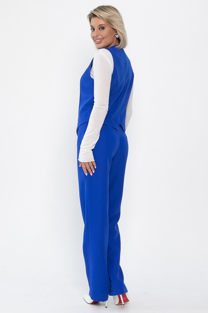 Состав : 65% полиэстер, 30% вискоза, 5% эластан Материал : костюмный Цвет : синий Принт : отсутствует Силуэт : полуприлегающий Карманы : отсутствуют Резинка в поясе : нет Вид застежки : брюки на молни... Показать описаниеи, жилет на пуговицах Декоративные элементы : отсутствует Стильный костюм в красивом цвете электрик станет ярким акцентом в вашем гардеробе. Этот комплект включает в себя элегантные брюки на молнии и жилет, оформленный четырьмя пуговицами. Подходит и как повседневный вариант, и как вариант для мероприятий. Этот костюм станет отличным выбором для тех, кто ценит стиль и комфорт. Рекомендуем поиграть со стилизацией: сочетайте костюм с классической рубашкой или же с топом, а можно сразу надеть жилет без нижнего слоя! Внимание! Рекомендуем ориентироваться на размерную сетку и выбирать свой привычный размер, согласно размерной таблице. *Допуск отклонения длины при массовом производстве 1-3 см является нормой. Уход за изделием: Ручная стирка или стирка в машине при температуре до 30 °C, деликатный режим. Не использовать отбеливатели. Разрешена глажка при температуре до 110 °C. При глажке использовать специальную насадку на подошве утюга, гладить с паром. Не замачивать и не выжимать. Стирать изделие наизнанку, отдельно от других вещей.