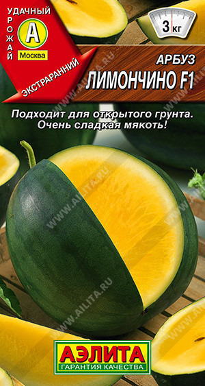 Шедевр отечественной селекции, великолепен и снаружи, и на вкус! Плетистые растения формируют первый урожай в средние сроки – спустя 85-90 дней от появления всходов. Масса одного плода в теплицах сред... Показать описаниеней полосы – около 3-5 кг, в южных регионах – 7-12 кг. При ограничении количества завязей на растении и хорошей агротехнике максимальный вес ягоды достигает 25 кг. Мякоть плотная, медово-сладкая, семена среднего размера. В защищенном грунте по мере роста маленьких арбузиков их необходимо подвязать или аккуратно зафиксировать сеточным материалом, в открытом грунте – подложить под плод изолирующий материал. Продукция хорошо транспортируется, хранится 2 месяца после уборки.