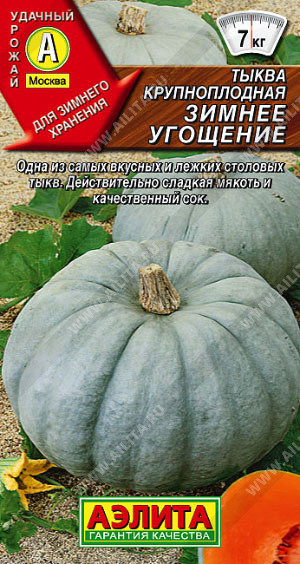 Отличный среднеранний сорт. Период от всходов до наступления спелости 100-110 дней. Растения мощные, длинноплетистые. Плоды массой 5-10 кг. Мякоть лососево-оранжевая, нежная, с высоким содержанием кар... Показать описаниеотина, витаминов С, группы В, РР, Е, а также железа, меди и фосфора. Обладает лечебными свойствами, рекомендуется для диетических целей. Полезна для питания детей. Плоды хорошо хранятся в течение всей зимы.