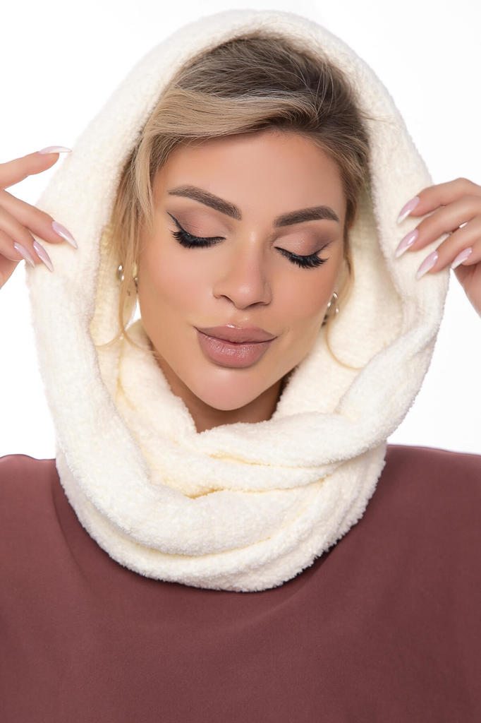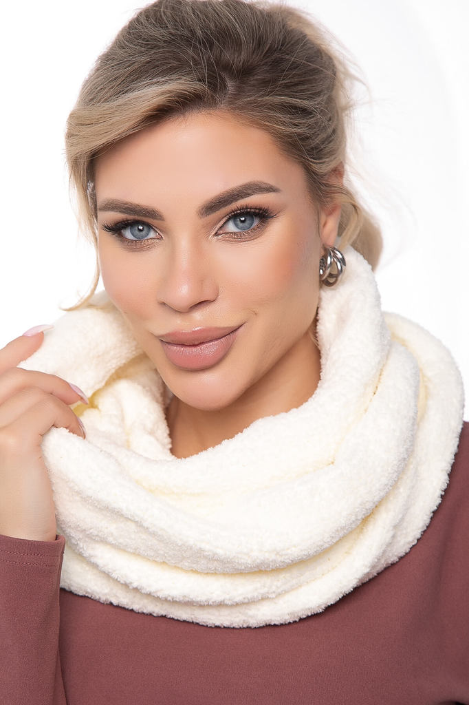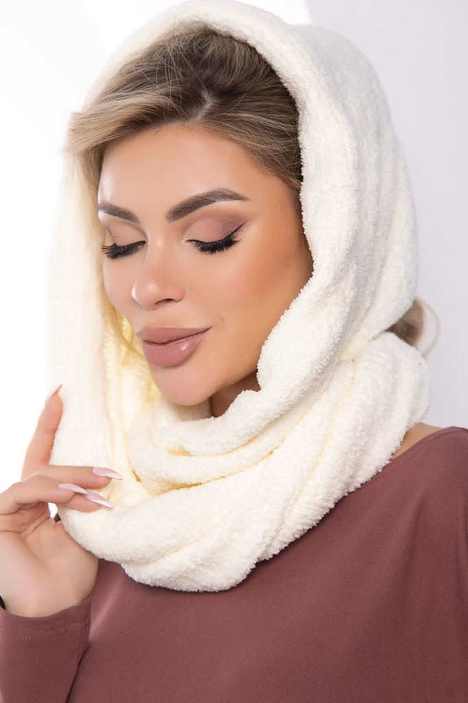 Артикул: СВ5. Ткань: пряжа. Состав: 100% микро п/э. Цвет: молочный. Длина: 120 см. Яркий и мягкий вязаный снуд легко драпируется в два оборота. Является альтернативой шапкам и капюшонам. Яркий оттенок... Показать описание снуда позволяет сочетать его практически с любым цветом верхней одежды и сделать акцентной деталью образа.
