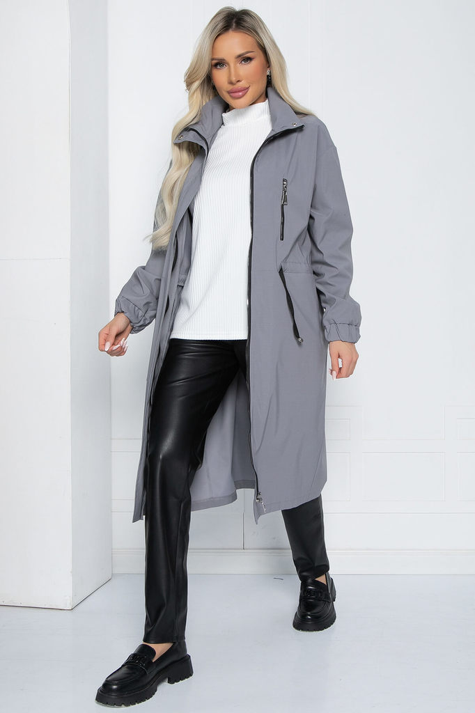 Артикул: Б12486-7. Тип ткани: синтетическая. Состав: 95% полиэстер, 5% эластан. Материал: плащевка. Цвет: серый. Принт: отсутствует. Вид застежки: молния и кулиска. Силуэт: прямой. Карм... Показать описаниеаны: есть. Подкладка: отсутствует. Декоративные элементы: отсутствуют. Длина по спинке от верхней точки плеча: 44-54/ 107 см. Размер изделия на модели: 44 Рост модели: 168 см. Удлинённый плащ — это то, что вам нужно в прохладные дни. Он не только стильный, но и практичный. Этот плащ станет вашим верным спутником в весеннюю и осеннюю непогоду. Он защитит вас от ветра и дождя, когда на улице становится холодно и сыро. С ним вы будете выглядеть модно и чувствовать себя комфортно в любую погоду. Уход за изделием: ручная стирка до 30 градусов; нельзя отбеливать; отжим запрещён; гладить при t не более 110 С; гладить с изнанки. Внимание! Рекомендуем ориентироваться на размерную сетку и выбирать свой привычный размер, согласно размерной таблице. *Допуск отклонения длины при массовом производстве 1-3 см является нормой.