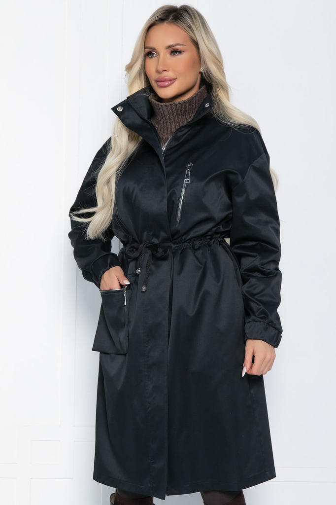 Артикул: Б12513-7. Тип ткани: синтетическая. Состав: 95% полиэстер, 5% эластан. Материал: плащевка. Цвет: чёрный. Принт: отсутствует. Вид застежки: молния и кулиска. Силуэт: прямой. Кар... Показать описаниеманы: есть. Подкладка: отсутствует. Декоративные элементы: отсутствуют. Длина по спинке от верхней точки плеча: 44-54/ 107 см. Размер изделия на модели: 44 Рост модели: 168 см. Удлинённый плащ — это то, что вам нужно в прохладные дни. Он не только стильный, но и практичный. Этот плащ станет вашим верным спутником в весеннюю и осеннюю непогоду. Он защитит вас от ветра и дождя, когда на улице становится холодно и сыро. С ним вы будете выглядеть модно и чувствовать себя комфортно в любую погоду. Уход за изделием: ручная стирка до 30 градусов; нельзя отбеливать; отжим запрещён; гладить при t не более 110 С; гладить с изнанки. Внимание! Рекомендуем ориентироваться на размерную сетку и выбирать свой привычный размер, согласно размерной таблице. *Допуск отклонения длины при массовом производстве 1-3 см является нормой.