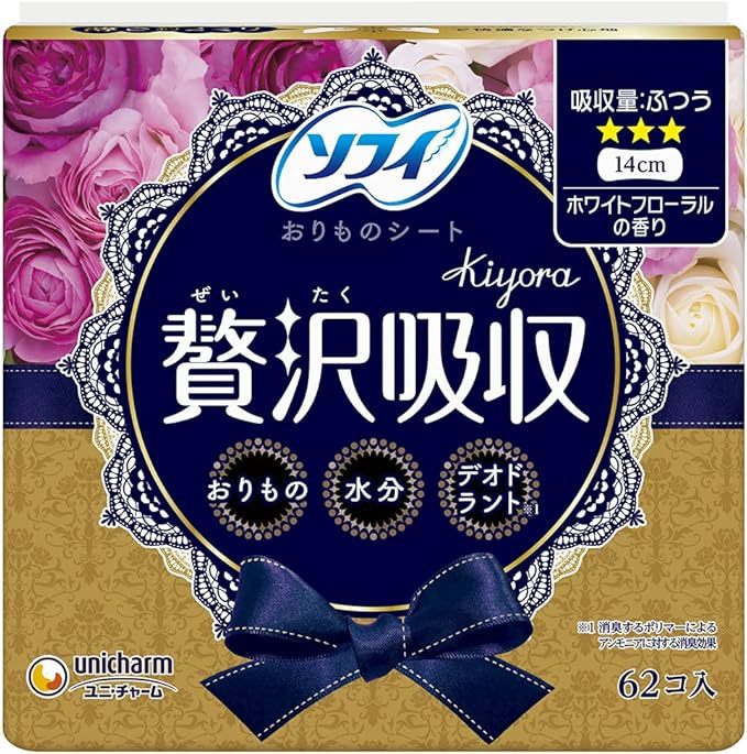UNICHARM Ежедневные прокладки Luxury Sofy KIYORA Fresh для чувствительной кожи с поглотителем запаха, легкий цветочный аромат, Размер: длина 14 см * ширина 5,5 см, 72 штВопросы по товару