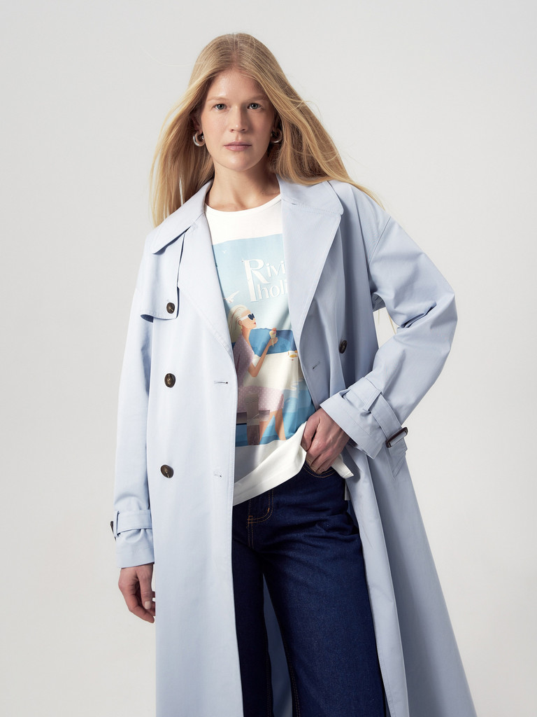 Цвет: Голубой Основная ткань: хлопок 60%, полиэстер 40% Подкладка: полиэстер 100% Особенности ткани: плащевая ткань с водоотталкивающим покрытием Покрой/Силуэт: прямой Тип рукава: рубашечный Тип ворот... Показать описаниеника: английский Вид застежки: пуговицы Комплектация: Пояс из основной ткани Пояс: из основной ткани Стиль: классика Длина изделия (170 см): 117,5 Обхват бедер: 122 Обхват груди: 121 Ширина рукава (по низу): 35 Ширина рукава (охват плеча): 44,4 Длина рукава (170 см): 54,5 Декоративные элементы: паты на рукавах, отлетная кокетка Цвет одежды на фотографиях может незначительно отличаться от оригинального.