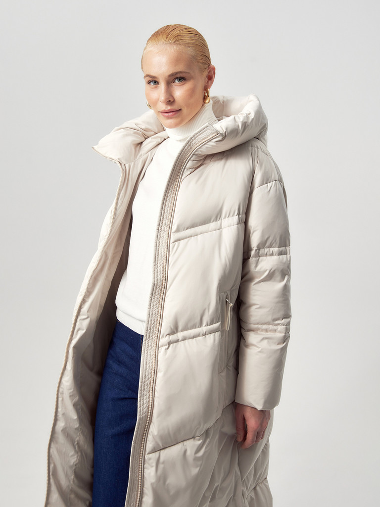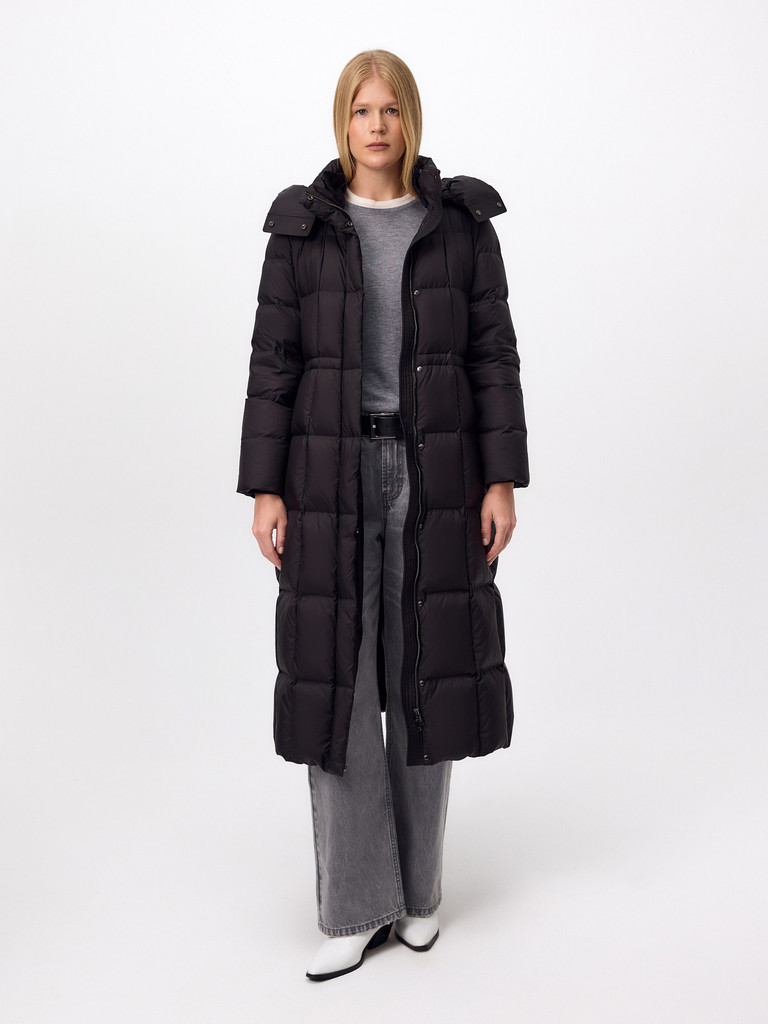 Длинный пуховик с капюшоном и утеплителем 90% пух, 10% пероВопросы по товару
