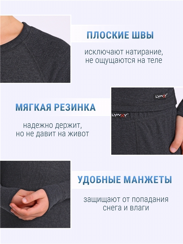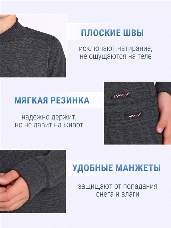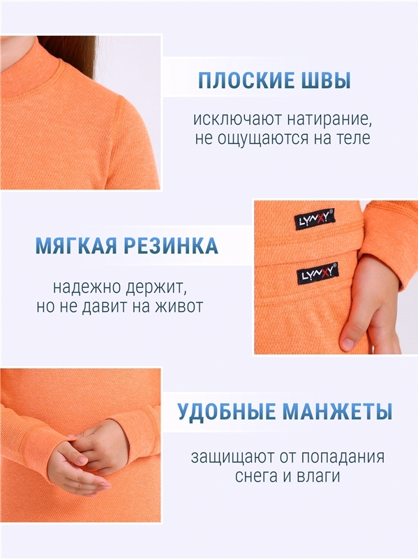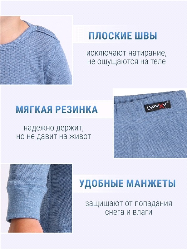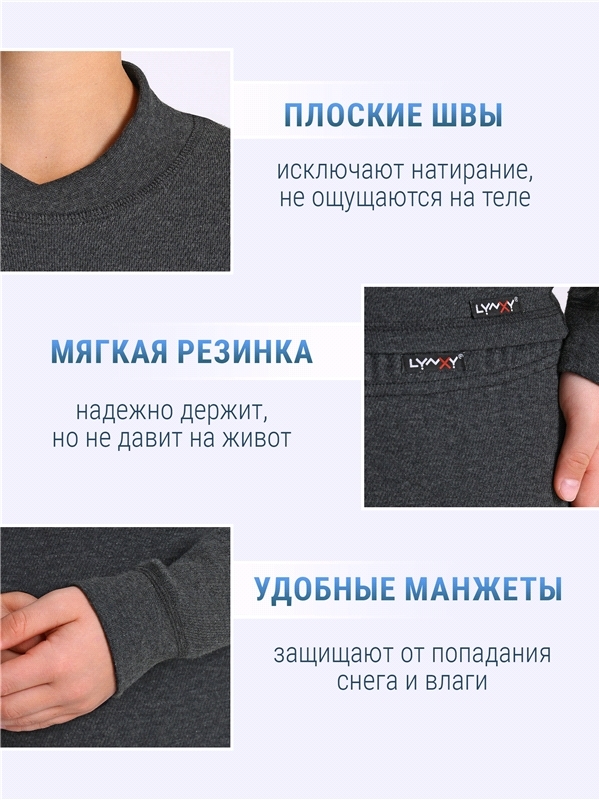 «Cool» (полиэстер 95%, вискоза 5%). Теплая термоодежда второго слоя из двухстороннего флисового полотна, популярная в качестве «поддевы» под верхнюю одежду в холодное время года: - сохраняет тепло и поддерживает комфортную температуру тела; - легкое, эластичное и износостойкое полотно; - гипоаллергенный материал, не вызывающий раздражения при температуре до - 15 градусов: для сохранения тепла и комфорта на длительное время в холодное время года. «Naturаl» (хлопок 95%, лайкра 5%). Хлопковое нательное белье, имеют свои достоинства: - мягкие изделия, приятные к телу; - воздухопроницаемое полотно, позволяющее коже дышать; - легко впитывает влагу - 100% натуральный и гипоаллергенный продукт при температуре до - 10 градусов: для сохранения тепла и комфорта в прохладную погоду при низкой физической активности. «Optima» (полиэстер 95%, вискоза 5%). Универсальная термоодежда для повседневного использования, выполненная из полиэстера: - сохраняет тепло и создает комфортный температурный режим на поверхности тела; - не впитывает влагу, позволяя ей выходить наружу, что позволяет коже оставаться сухой; - нежный, легкий и приятный к коже материал; - гипоаллергенный материал, не вызывающий раздражения при температуре до - 20 градусов: для сохранения тепла и комфорта в холодную погоду при низкой и средней физической активности. «Woolly» (хлопок 100%, акрил 70% + шерсть 30%). Коллекция из двухслойного полотна (внутренний слой из 100% хлопка, наружный слой – акрил с шерстью), ценится благодаря повышенной теплосбрегаемости полотна: - идеально сохраняет тепло и помогает регулировать температуру тела; - комфортно при ежедневной носке благодаря эластичности полотна; - дает эффект «сухого тепла», благотворно влияющего на суставы и мышцы; - 100% натуральный и гипоаллергенный продукт при температуре до - 20 градусов: для сохранения тепла и комфорта в холодную погоду при низкой и средней физической активности. «Веселая семейка» (полиэстер 95%, вискоза 5%). Теплая термоодежда второго слоя из двухстороннего флисового полотна, популярная в качестве «поддевы» под верхнюю одежду в холодное время года: - сохраняет тепло и поддерживает комфортную температуру тела; - легкое, эластичное и износостойкое полотно; - гипоаллергенный материал, не вызывающий раздражения при температуре до - 15 градусов: для сохранения тепла и комфорта на длительное время в холодное время года. «Soft» (хлопок 60%, полиэстер 40%). Термобелье из двухслойного полотна на хлопковой основе. Создает эффект "сухого тепла", обеспечивая терморегуляцию тела. Внутренний хлопковый слой с начесом приятен к телу, легко впитывает влагу, не раздражает кожу. Внешний слой отводит влагу и сохраняет тепло. Уход: деликатная стирка при температуре до 40 градусов без замачивания. Подходит для ежедневного использования в качестве нательного белья в холодную погоду до -20 градусов при средней физической активности.
