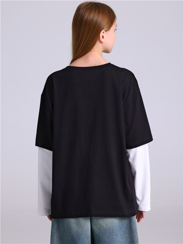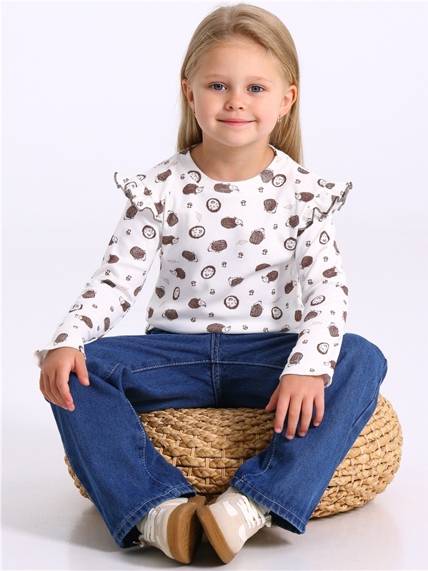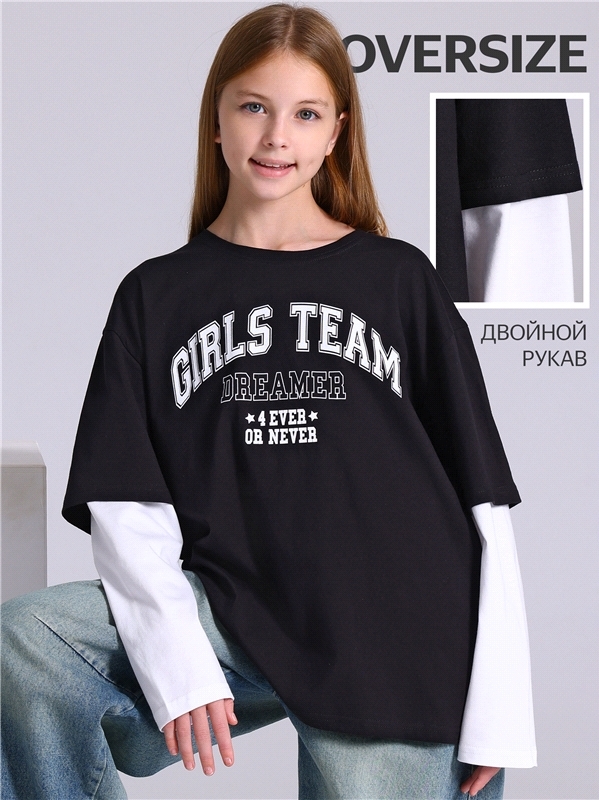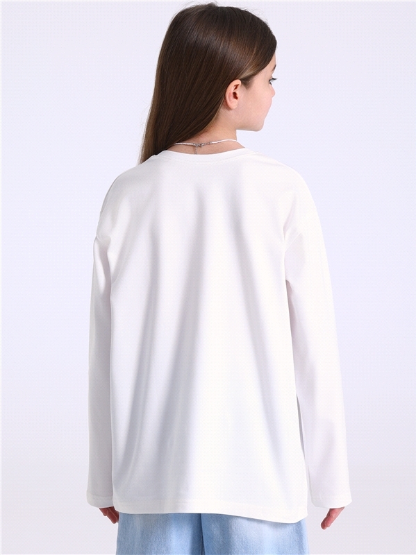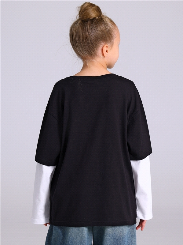 Лонгслив для девочки выполнен из кулира - лёгкого хлопкового полотна. Изделие свободного силуэта, со спущенными плечами и двойными рукавами, Уход: только машинная стирка (руками не стирать!) при темпе... Показать описаниературе 40 градусов, без предварительного замачивания. Изделия с печатью перед стиркой необходимо вывернуть на изнаночную сторону. Состав: кулир / хлопок 100%.