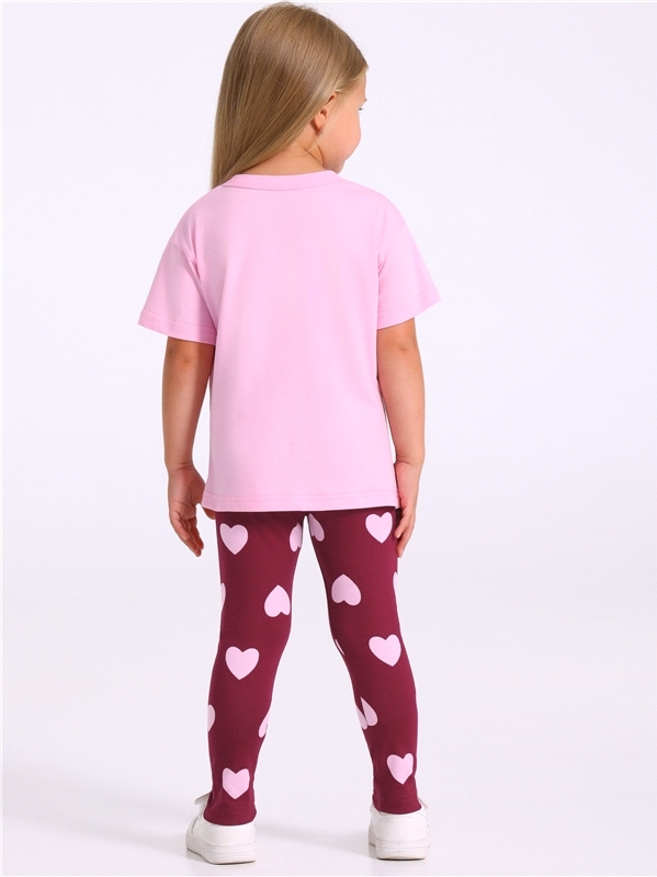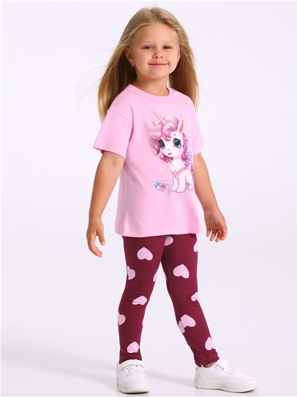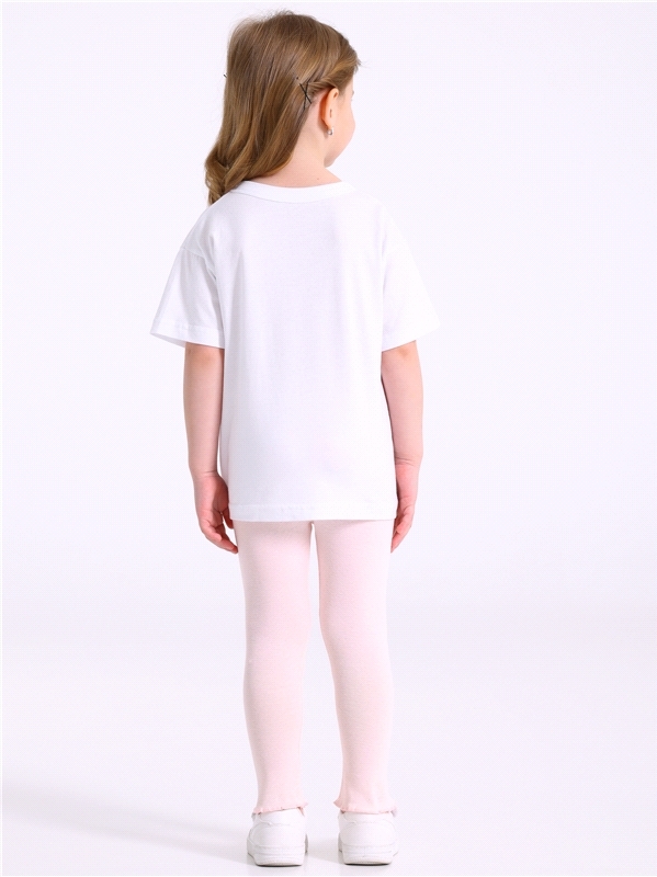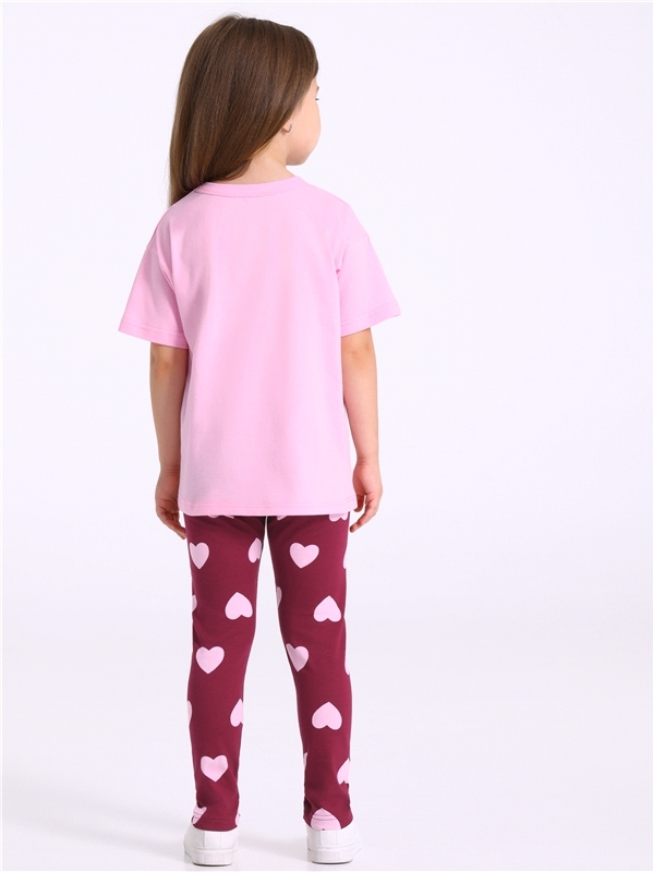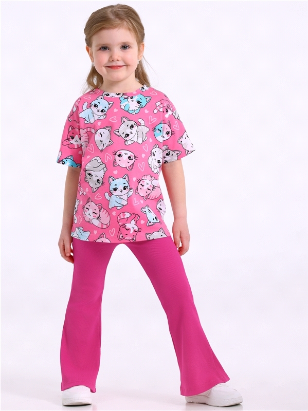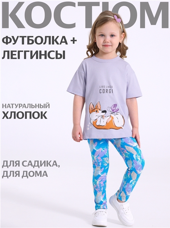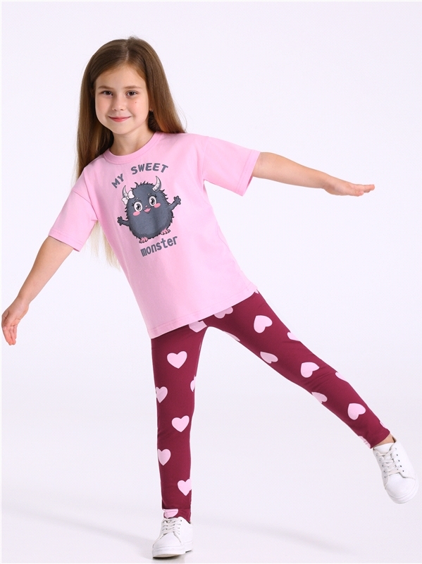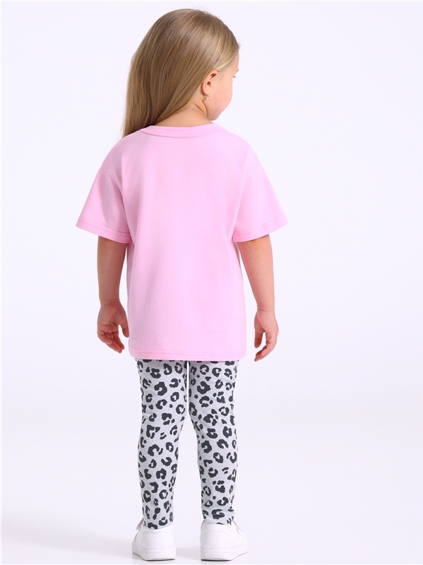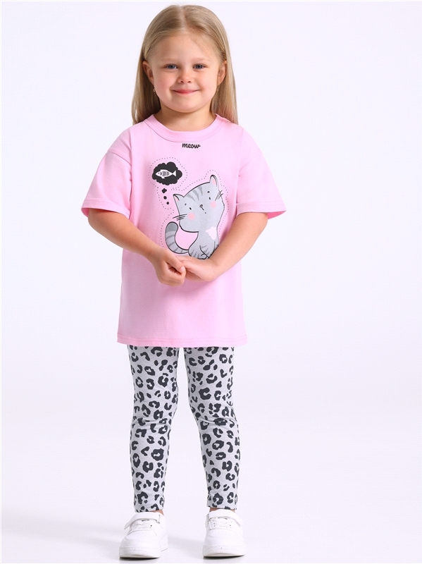 Комплект для девочки из футболки и леггинсов выполнен из кулира - легкого хлопкового полотна. Оверсайз футболка с короткими рукавами со спущенным плечом, украшена стильным принтом. Леггинсы на удобном... Показать описание эластичном поясе. Отличный выбор на каждый день! Уход: только машинная стирка (руками не стирать!) при температуре 40 градусов, без предварительного замачивания. Изделия с печатью и декором перед стиркой необходимо вывернуть на изнаночную сторону. Состав: кулир / хлопок 100%.