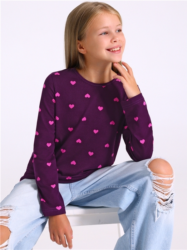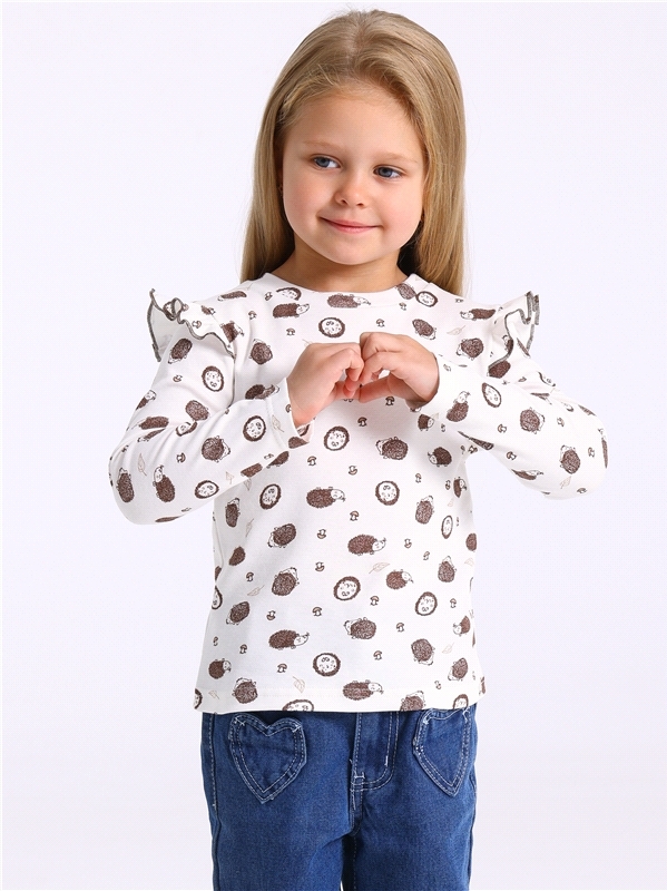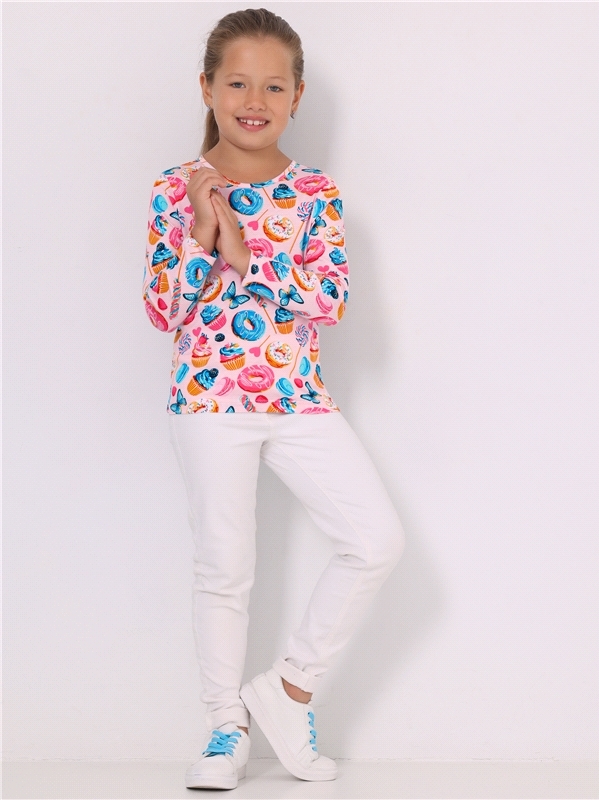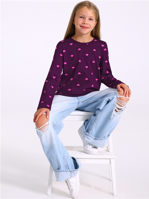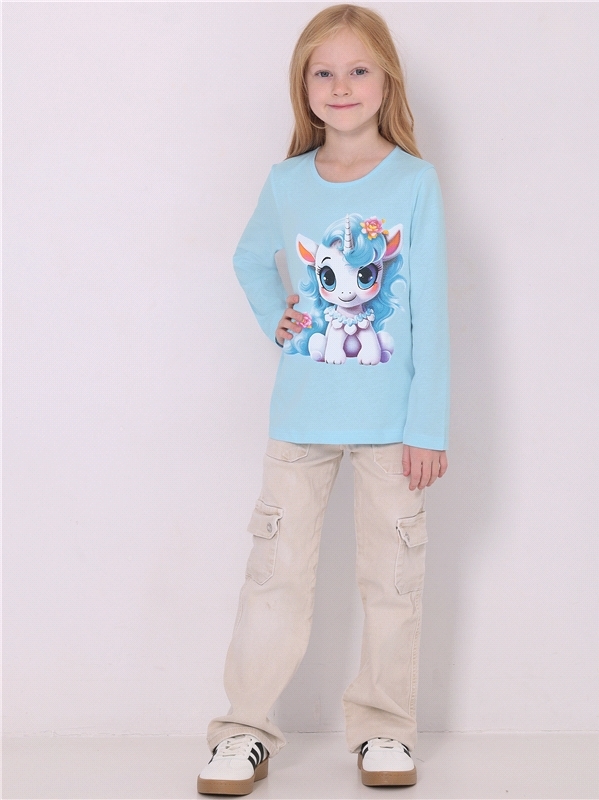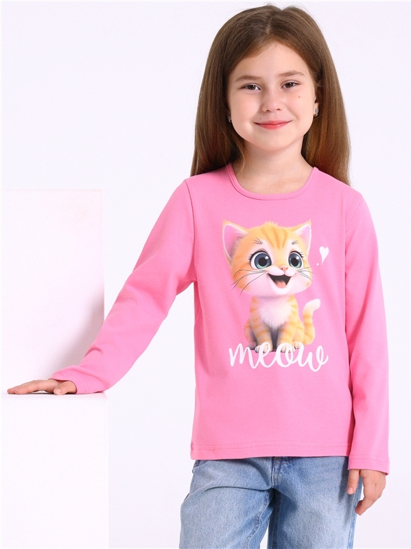 Лонгслив для девочки выполнен из кулира – тонкого хлопкового полотна. Изделие прямого силуэта с удлиненными рукавами-реглан. Вырез горловины обработан обтачкой из полотна-компаньона. Полочка украшена ... Показать описаниепечатью. Уход: только машинная стирка (руками не стирать!) при температуре 40 градусов, без предварительного замачивания. Изделия с печатью и декором перед стиркой необходимо вывернуть на изнаночную сторону. Состав: кулир / хлопок 100%.