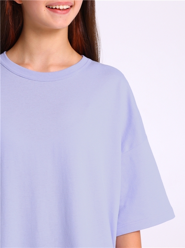 Оверсайз футболка для девочки выполнена из кулира – легкого хлопкового полотна. Изделие прямого покроя, с короткими рукавами, со спущенной линией плеча, Круглый вырез горловины обработан эластичной бе... Показать описаниейкой из полотна компаньона, украшено печатью. Уход: только машинная стирка (руками не стирать!) при температуре 40 градусов, без предварительного замачивания. Изделия с печатью и декором перед стиркой необходимо вывернуть на изнаночную сторону. Состав: кулир / хлопок 100%.