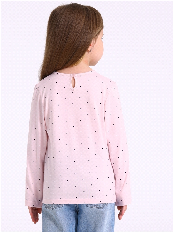 Лонгслив для девочки выполнен из кулира - тонкого хлопкового полотна. Изделие с длинными рукавами, по спинке застегивается на пуговку, украшено печатью. Уход: только машинная стирка (руками не стирать... Показать описание!) при температуре 40 градусов, без предварительного замачивания. Изделия с печатью и декором перед стиркой необходимо вывернуть на изнаночную сторону. Состав: кулир / хлопок 100%.
