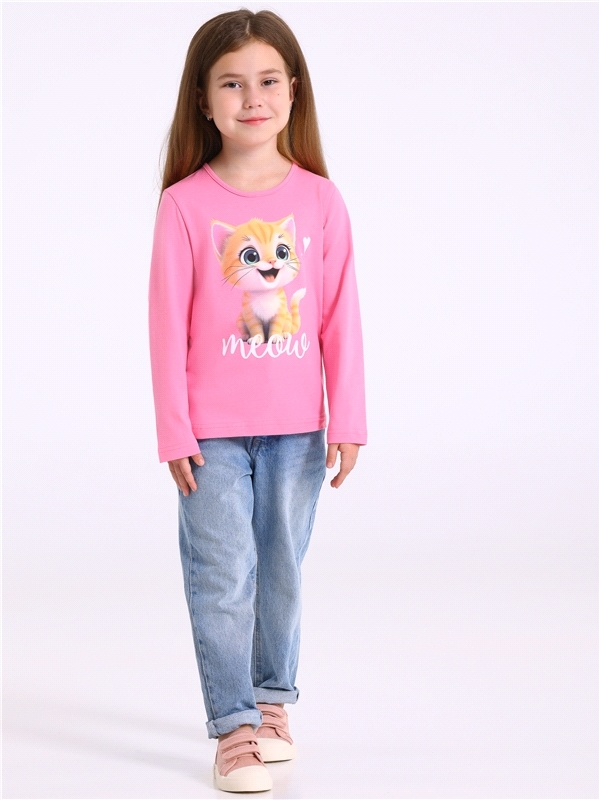 Лонгслив для девочки выполнен из кулира - тонкого хлопкового полотна. Изделие с длинными рукавами, украшено стильным принтом. Отличный выбор на каждый день! Уход: только машинная стирка (руками не сти... Показать описаниерать!) при температуре 40 градусов, без предварительного замачивания. Изделия с печатью и декором перед стиркой необходимо вывернуть на изнаночную сторону. Состав: кулир / хлопок 100%.