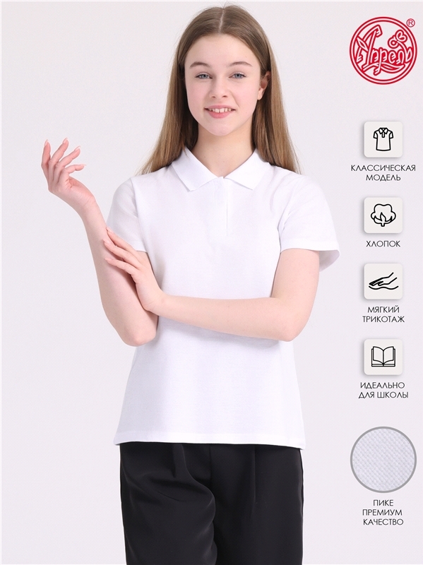 Футболка-поло для девочки выполнена из хлопкового полотна. Изделие с короткими рукавами:с застежкой на кнопочки. Отличный вариант для школы! Уход: только машинная стирка (руками не стирать!) при темпе... Показать описаниературе 40 градусов:без предварительного замачивания. Состав: пике / хлопок 100%.
