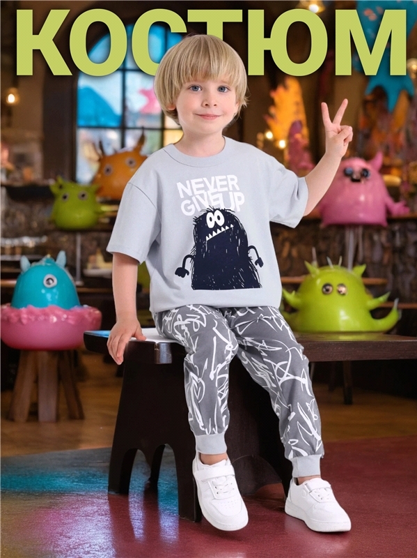 Комплект для мальчика из пуловера и брюк выполнен из футера - плотного хлопкового полотна с лайкрой. Пуловер с длинными рукавами на манжетах и V-образным вырезом горловины. Брюки на эластичном поясе:и... Показать описаниемеют удобные карманы и декоративные отстрочки-стрелки. Набивка полотна имитирует костюмную ткань - стильный тренд этого года. Отличный вариант для школы! Уход: только машинная стирка (руками не стирать!) при температуре 40 градусов:без предварительного замачивания. Ассортимент осенне-зимнего периода. Состав: футер / хлопок 95% + лайкра 5%.