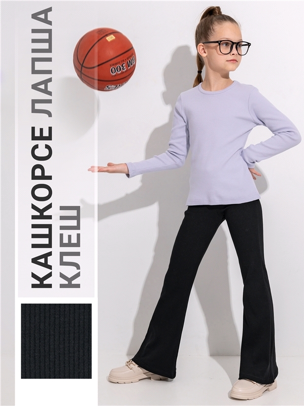 Брюки-клеш для девочки выполнены из ластика - эластичного хлопкового полотна в рубчик. Изделие со средней высотой посадки:на эластичном поясе:декорировано острочками-стрелкам и разрезами. Уход: только... Показать описание машинная стирка (руками не стирать!) при температуре 40 градусов:без предварительного замачивания. Состав: ластик / хлопок 95% + лайкра 5%.