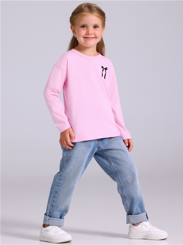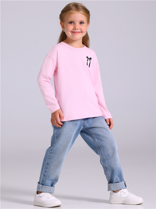 Лонгслив для девочки выполнен из кулира - лёгкого хлопкового полотна. Изделие свободного силуэта:со спущенными плечами и двойными рукавами:Полочка украшена печатью. Уход: только машинная стирка (рукам... Показать описаниеи не стирать!) при температуре 40 градусов:без предварительного замачивания. Изделия с печатью перед стиркой необходимо вывернуть на изнаночную сторону. Состав: кулир / хлопок 100%.