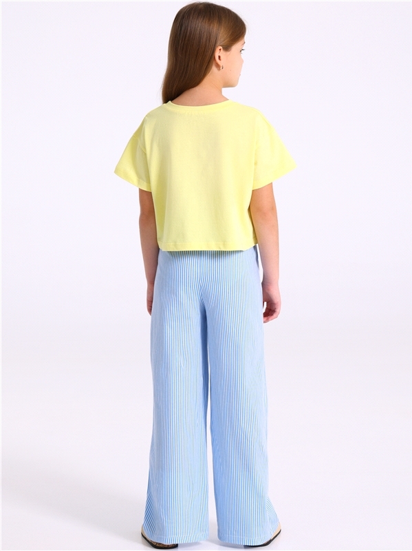 Брюки палаццо для девочек из плотного полотна с рельефным рисунком:выполненным с применением жаккардового плетения. Изделие без карманов на удобном эластичном поясе. Уход: только машинная стирка (рука... Показать описаниеми не стирать!) при температуре 40 градусов:без предварительного замачивания. Ассортимент осенне-зимнего периода. Состав: жаккард / хлопок 55% + ПЭ 42% + лайкра 3%.