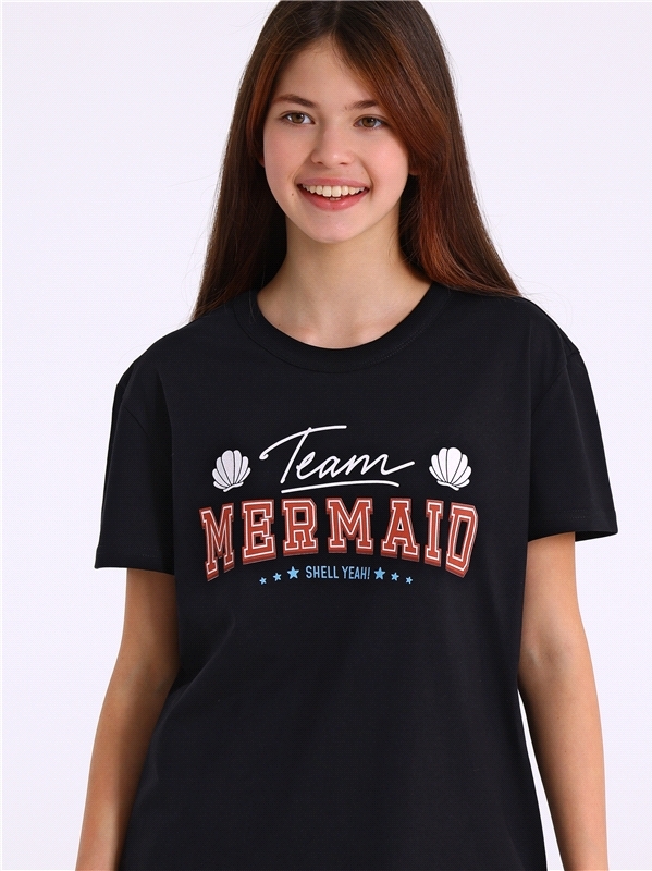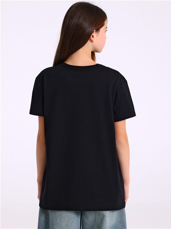 Футболка для девочки выполнена из кулира - легкого хлопкового полотна с лайкрой. Изделие с короткими рукавами:украшено печатью:имитирующей кружевной воротничок. Отличный вариант для школьницы на кажды... Показать описанией день! Уход: только машинная стирка (руками не стирать!) при температуре 40 градусов:без предварительного замачивания. Изделия с печатью и декором перед стиркой необходимо вывернуть на изнаночную сторону. Состав: кулир с лайкрой / хлопок 92% + лайкра 8%.