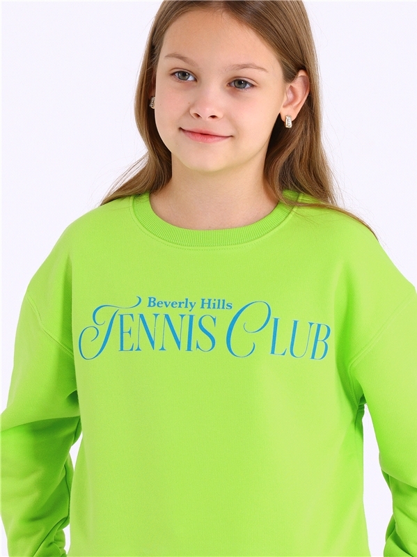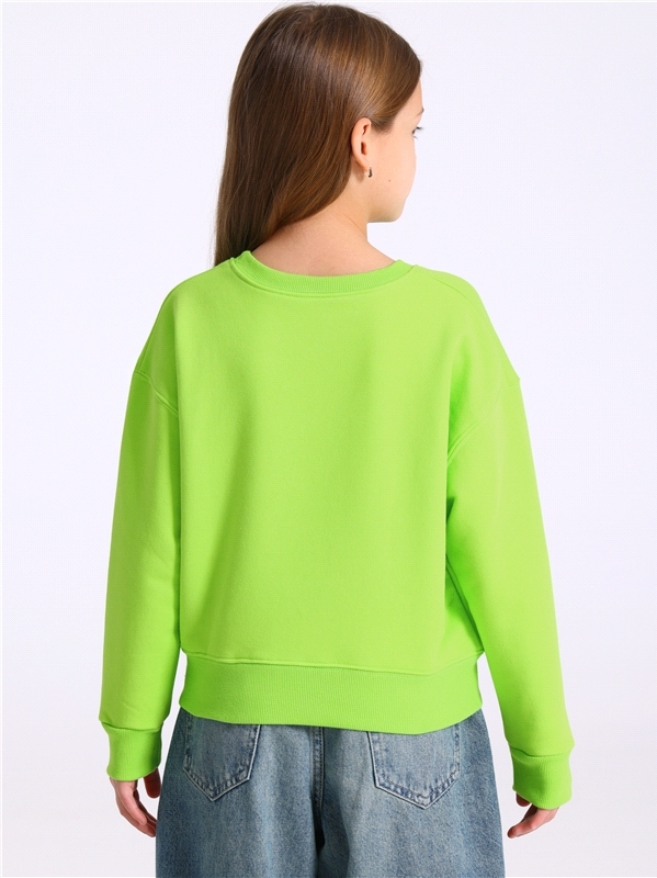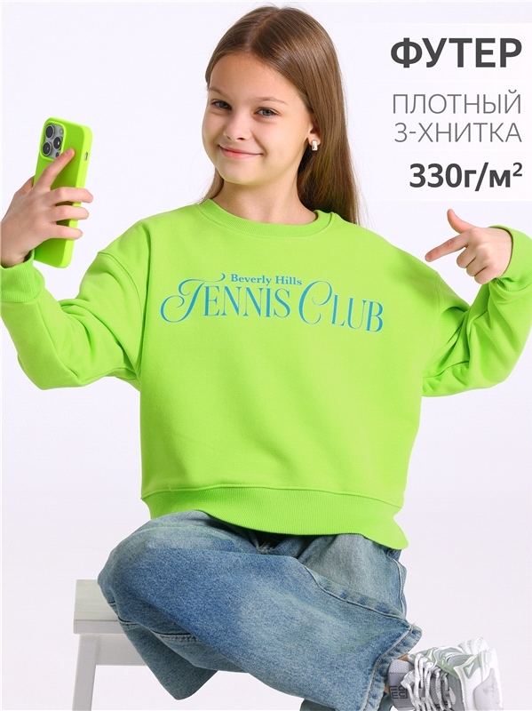 Свитшот для девочки из футера - плотного теплого хлопкового полотна. Изделие свободного силуэта со спущенным плечом и поясом по низу изделия. Рукава длинные с манжетами. Полочка украшена печатью. Уход... Показать описание: только машинная стирка (руками не стирать!) при температуре 40 градусов:без предварительного замачивания. Изделия с печатью и декором перед стиркой необходимо вывернуть на изнаночную сторону. Состав: футер / хлопок 80% + ПЭ 20%.