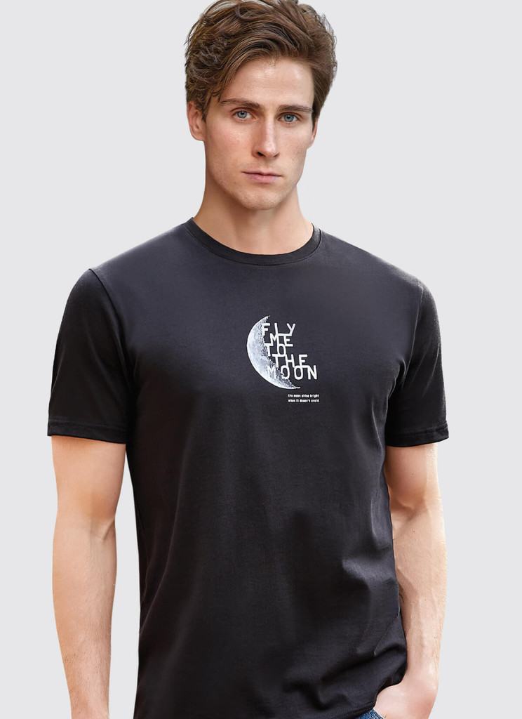 Футболка Berrak классического фасона темно-синего цвета прямого кроя, с коротким рукавом и округлым вырезом. Свободная посадка. С принтом. Рукав втачной с манжетом. Футболка сшита из 100 % хлопка... Показать описание pamuk.