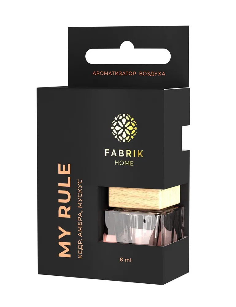 FABRIK Cosm. Ароматизатор воздуха автомобиль,офис,дом My rule кедр,амбра,мускус до 30дней 8мл