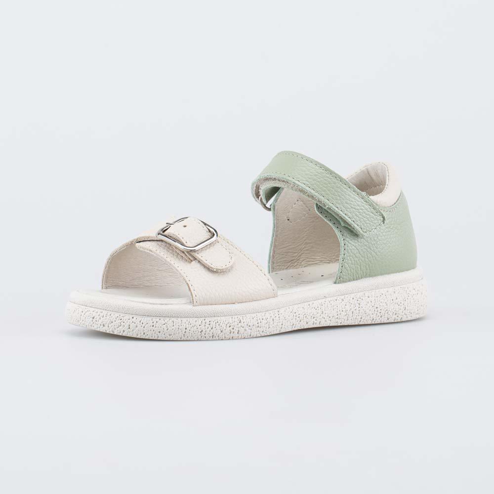 Кожаные сандалии разработаны для девочки, которая только начинает ходить. Детские сандалии имеют верх из натуральной кожи, которая дополнена дышащим текстилем в сеточку. Подкладка и несъемная стелька ... Показать описаниеиз белой натуральной кожи обеспечивают гигиенические свойства и защищают носочки от окрашивания. Сандалии с закрытым задником поддерживают пятку при ходьбе, при этом полуоткрытая конструкция обеспечивает вентиляцию. В таких сандалиях комфортно в жаркую погоду, также это удачный вариант обуви в детский сад. Сандалии на липучках-велькро легко отрегулировать по подъему детской ножки, в них удобно обувать ребенка. Подошва из ПУ (полиуретана) гибкая, легкая и амортизирующая. Не оставляет следов на полу, поэтому обувь может быть использована в качестве сменки для дошкольных учреждений. Модель анатомически правильная: имеет приподнятость пяточной части и мягкий подсводник. Это положительно влияет на развитие стоп и всего опорно-двигательного аппарата. Сделано в России.