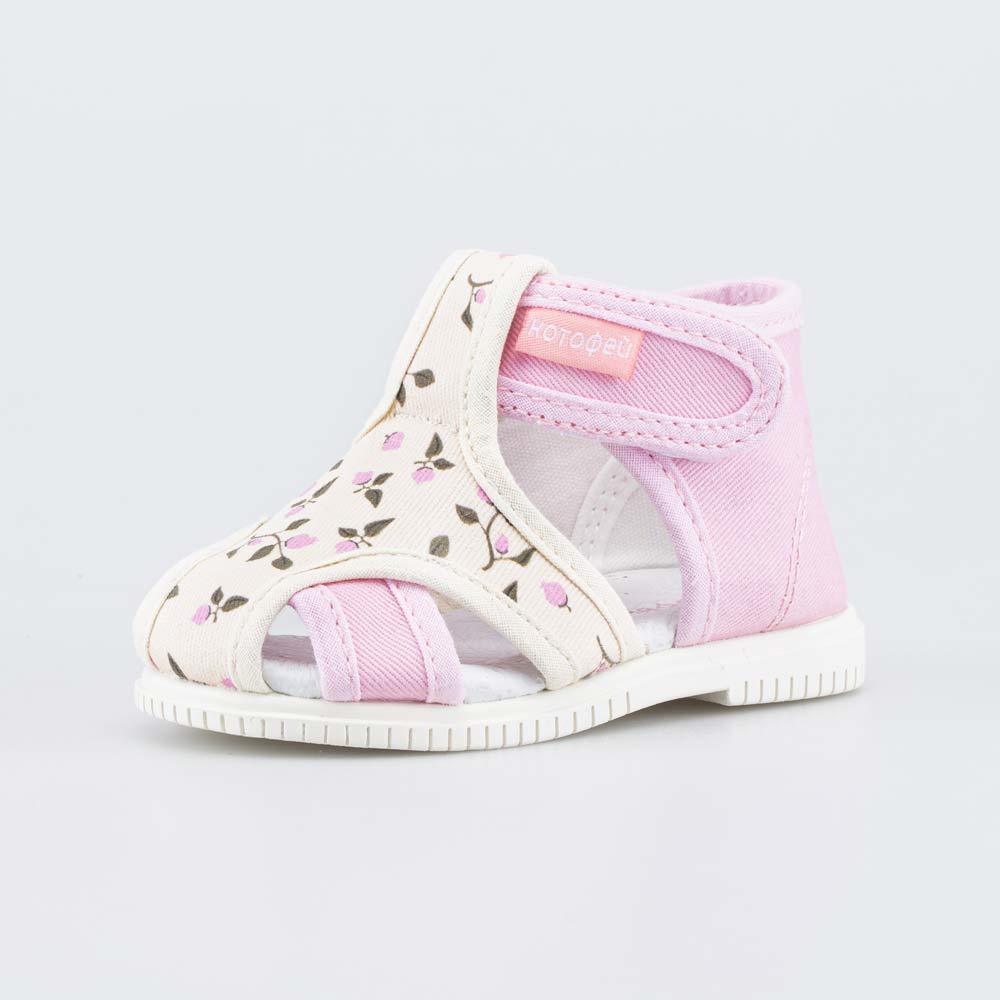 Текстильные сандалии, украшенные милым ягодным принтом, подходят для девочки, которая только начинает ходить. Верх и подкладка из хлопка обеспечивают максимально комфортный микроклимат для детской нож... Показать описаниеки. Стелька из натуральной кожи имеет небольшой подсводник, который мягко поддерживает стопу, но не мешает ей развиваться естественным образом. Липучки позволяют быстро обувать и разувать ребенка. Подошва из облегченной резины хорошо амортизирует, подходит для использования на напольных покрытиях в детском саду. Обувь не содержит элементов, которые ребенок может оторвать и проглотить. Модель может использоваться для первых шагов: - каблучок Томаса защищает от падения назад; - анатомическая подошва повторяет контур стопы ребенка; - небольшой подсводник поддерживает стопу; - закрытый носок защищает пальчики от травм. Сделано в России.