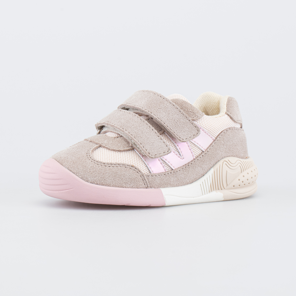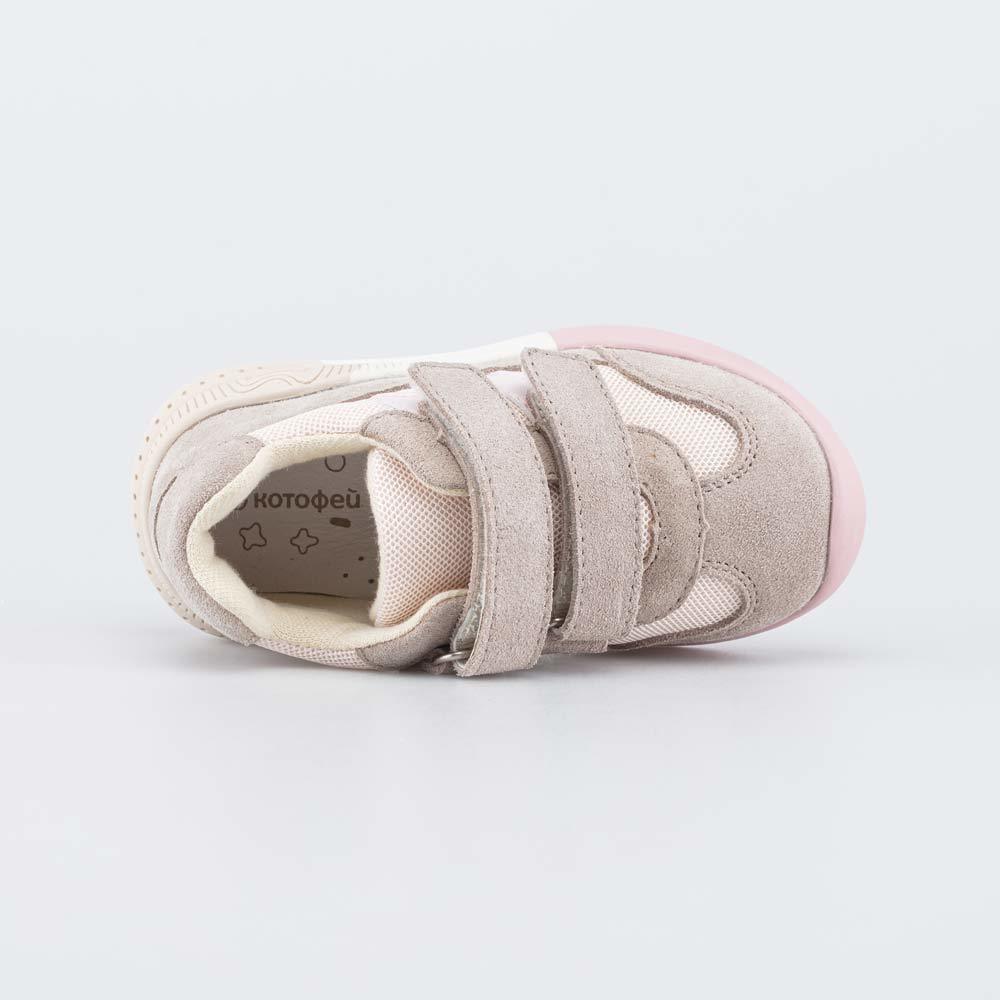Детские кроссовки, выполненные в сочетании трендовых цветов (бежевого и розового), подходят для девочки, которая уже начала активно ходить. Верх изготовлен из сочетания натуральной кожи-велюра и плотн... Показать описаниеого сетчатого материала, который традиционно используется в спортивной обуви для оптимальной вентиляции ножки во время движения. Подкладка и стелька из хлопка обеспечивают комфортный и безопасный микроклимат внутри обуви. Формованная основа стельки амортизирует и поддерживает стопу. Задник необходимой жесткости фиксирует пяточку при ходьбе, а мягкий манжет дарит комфорт. Кроссовки на липучках надежно фиксируются на детской ножке. Легкая подошва из резины привлекает внимание расцветкой и рельефной формой. Образует наплыв на носочную часть, предохраняя ее повреждений, а пальчики от ударов. Для защиты от грязи и пыли время от времени обрабатывайте обувь специальным спреем и чистите мягкой щеткой. Машинная стирка исключена. Сделано в России.