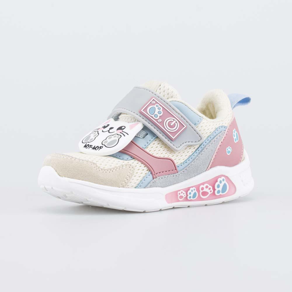 Светящиеся кроссовки для девочки украшены съемной деталью в виде котенка и имеют функцию воспроизведения звука – при нажатии кнопки на ремешке издают мяуканье. Верх выполнен из высокотехнологичного те... Показать описаниекстильного материала, который обеспечивает оптимальный уровень вентиляции для детских стоп. Каркас поддерживают детали из натуральной кожи. Подкладка и съемная стелька из хлопка обеспечивают оптимальный микроклимат внутри. Кроссовки на липучках дополнены шнурками-резинками, которые легко подстраиваются под подъем ножки. Легкая подошва из ЭВА (этиленвинилацетата) оснащена светодиодами, которые управляются кнопкой на ремешке. Модель анатомически-правильная: задняя часть приподнята, задник необходимой жесткости поддерживает пяточку при ходьбе, круглый носок позволяет пальчикам свободно двигаться, формованная основа стельки поддерживает стопу в правильном положении. Для сохранения внешнего вида рекомендуем обрабатывать кроссовки защитными спреями и чистить мягкой щеткой.
