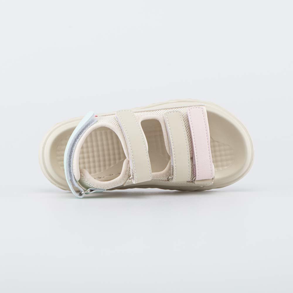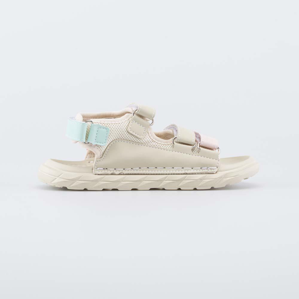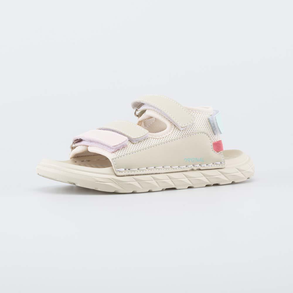 Бежевые сандалии отлично дополняют пляжный образ девочки. Модель максимально открытая – подходит для жаркой погоды и быстро высыхает при намокании. Ремешок в пяточной части можно отстегнуть, превратив... Показать описание сандалии в летние шлепанцы. Верх этой пляжной обуви выполнен из текстиля, за которым легко ухаживать. Подкладка из гипоаллергенного полиэстера обеспечивает комфорт. Стелька из ЭВА не накаляется на солнце и имеет неоднородную фактуру, которая обеспечивает хорошее сцепление с влажной ножкой. Сандалии на липучках легко отрегулировать по подъему, удобно обувать и снимать. Материал ЭВА (этиленвинилацетат), из которого выполнена подошва, хорошо амортизирует и сохраняет летнюю обувь легкой. Анатомически правильная внутренняя форма соответствует изгибам детской стопы и обеспечивает необходимую поддержку.