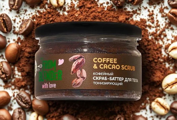 Coffee&Cacao Scrub Кофейный скраб-баттер для тела Тонизирующий питательный FROM BLENDER WITH LOVE. Кремовая текстура с скрабирующими частичками кофейного цвета с бодрящим запахом кофе. From blender wi... Показать описаниеth love - натуральный гурманский уход для лица, тела и волос, вобравший в себя всю пользу свежевыжатых фруктовых соков, ягод и перемолотых орехов - словно они попали в баночку прямо из блендера. Ароматный скраб-баттер для тела с кокосовой стружкой и абиссинским кофе глубоко очищает кожу, придавая ей гладкость, шелковистость и восхитительное сияние. А взбитое масло какао интенсивно увлажняет и питает, делая кожу невероятно нежной на ощупь. Результат: Кожа гладкая, более упругая.