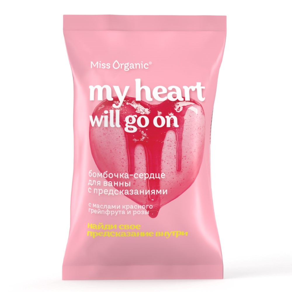 MISS ORGANIC БОМБОЧКА-СЕРДЦЕ ДЛЯ ВАННЫ С ПРЕДСКАЗАНИЯМИ MY HEART WILL GO ON - грейпфрут с розойДопустим незначительный облом по кромке, цвет розовый насыщенный, аромат сладкий с нотами цитрусов и цвет... Показать описаниеов. Эта бомбочка - просто любовь! Скорее читай предсказание и ныряй в ванну: суперсила красного грейпфрута и розы превратит воду в настоящий цитрусовый шейк, который подарит твоей коже нереальную гладкость, нежность розовых лепестков и круто поднимет настроение!